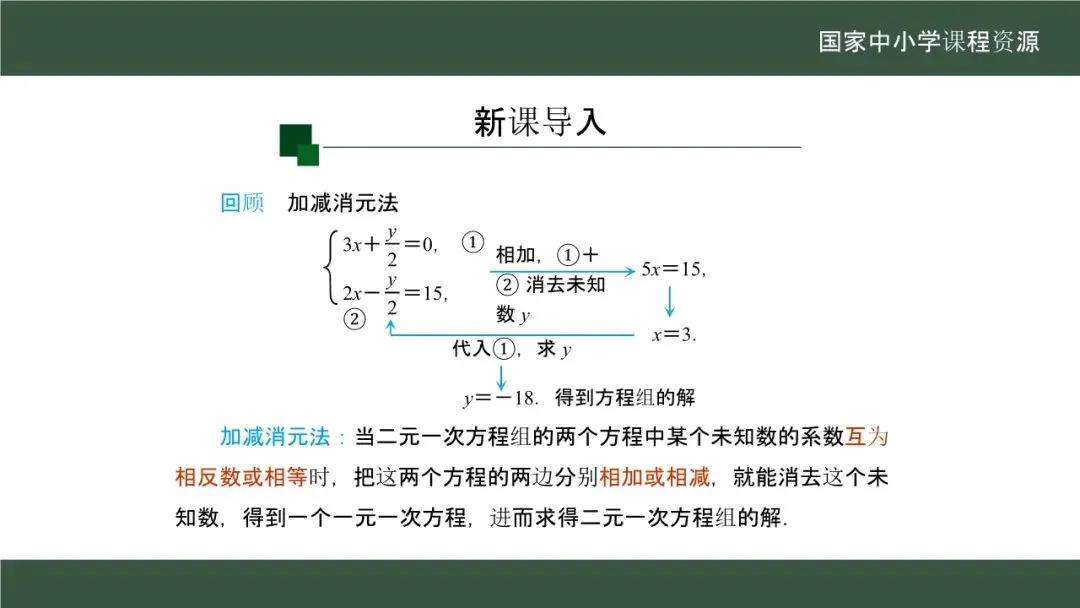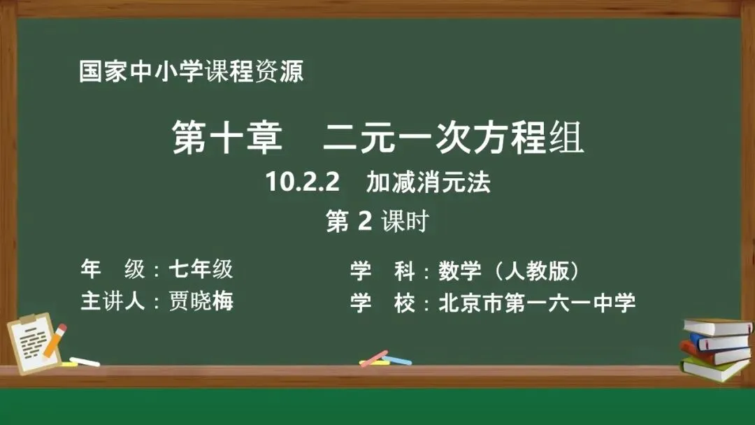 当前位置:首页>课件>【教学课件】(新教材)人教版初中数学七年级下册《10.2.2 加减消元法》第2课时