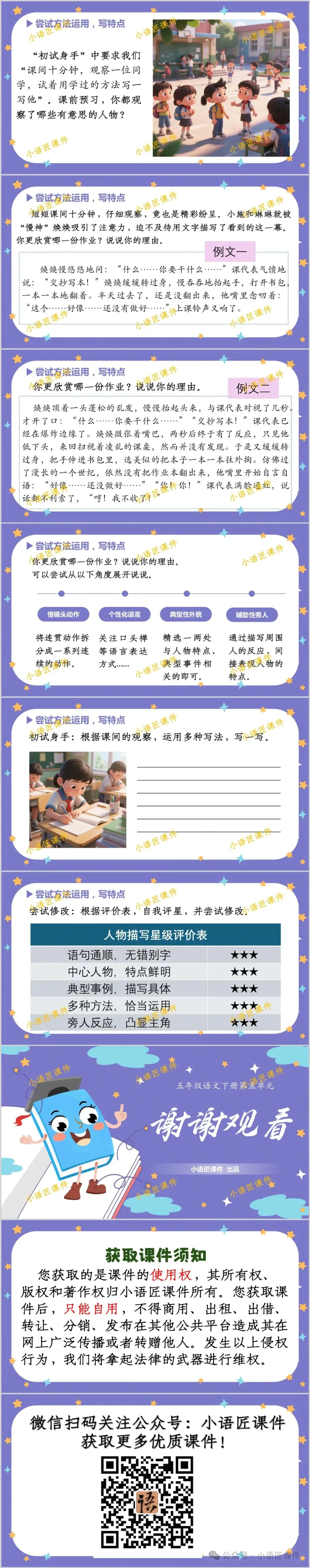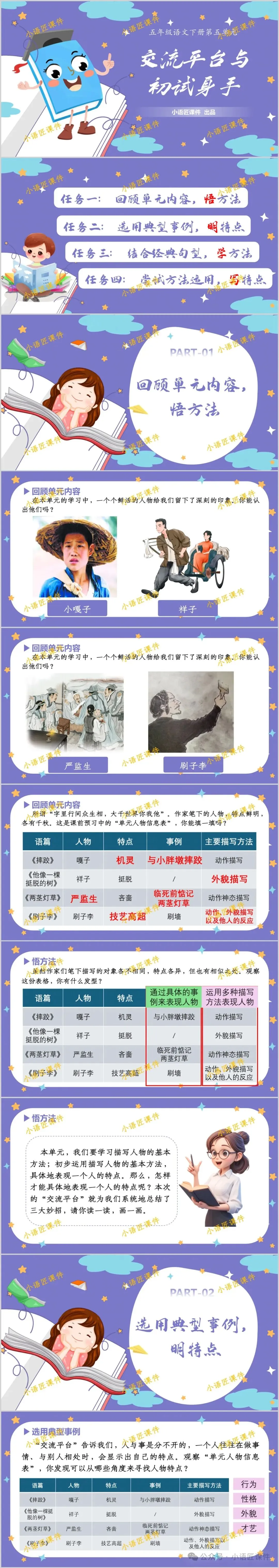 今天给大家分享五年级下册第五单元《交流平台与初试身手》的独家课件。