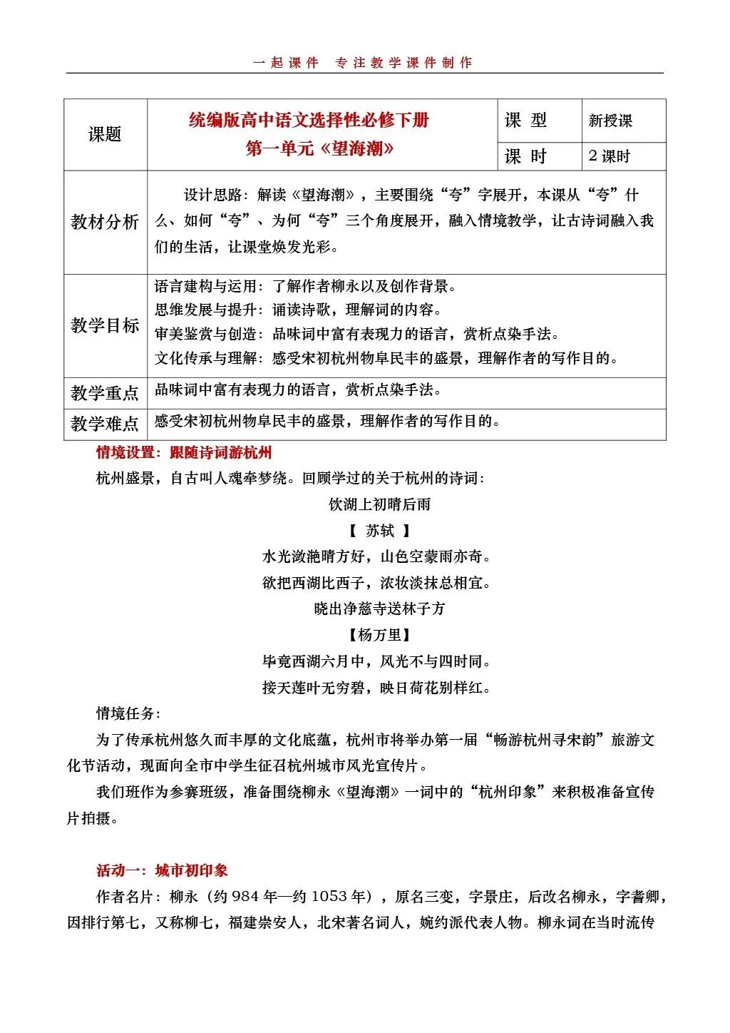 【一起语文选必下】| 《望海潮》:课件+教学设计