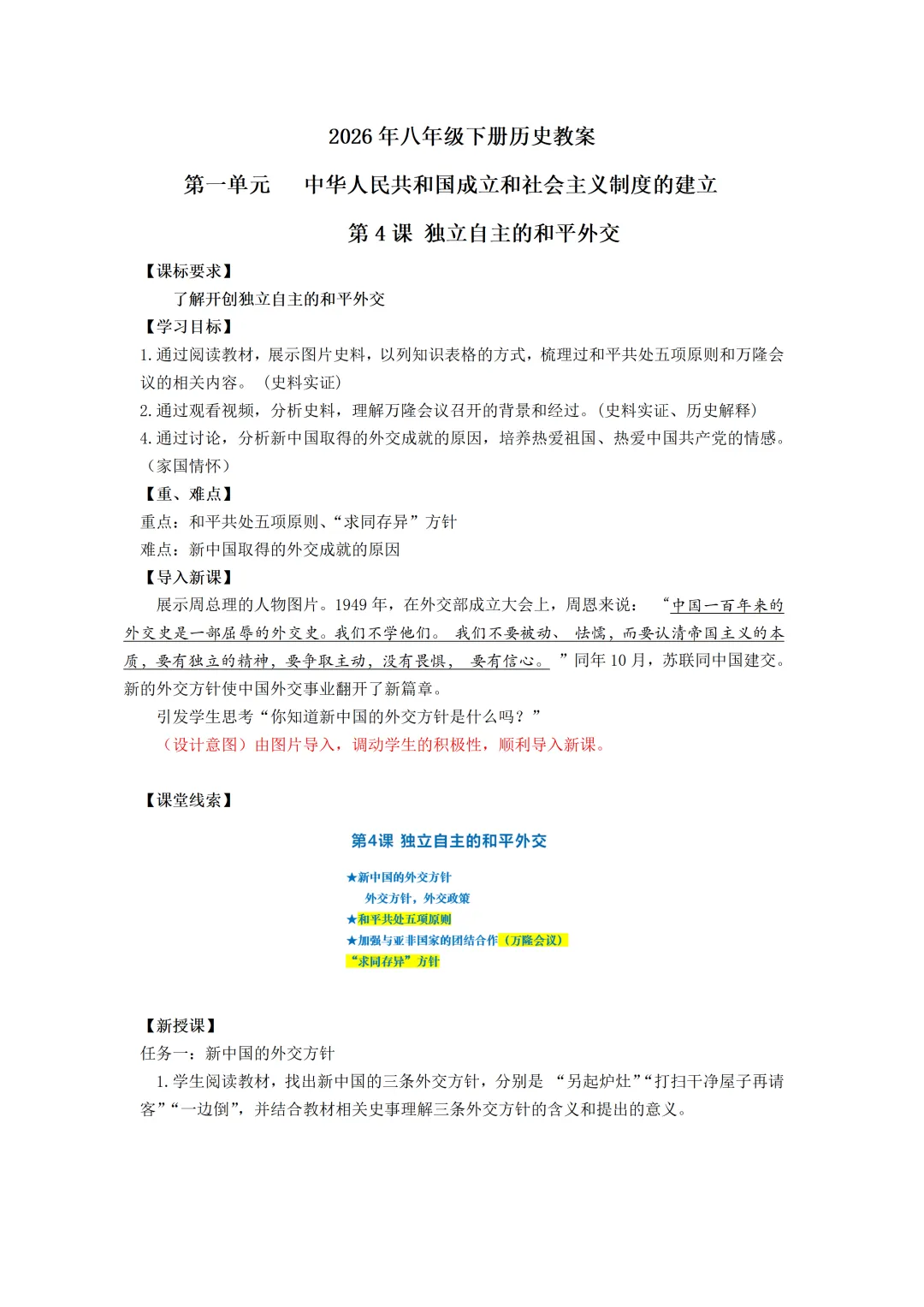 新教材 历史八年级下册教案+课件+知识点(2026春)