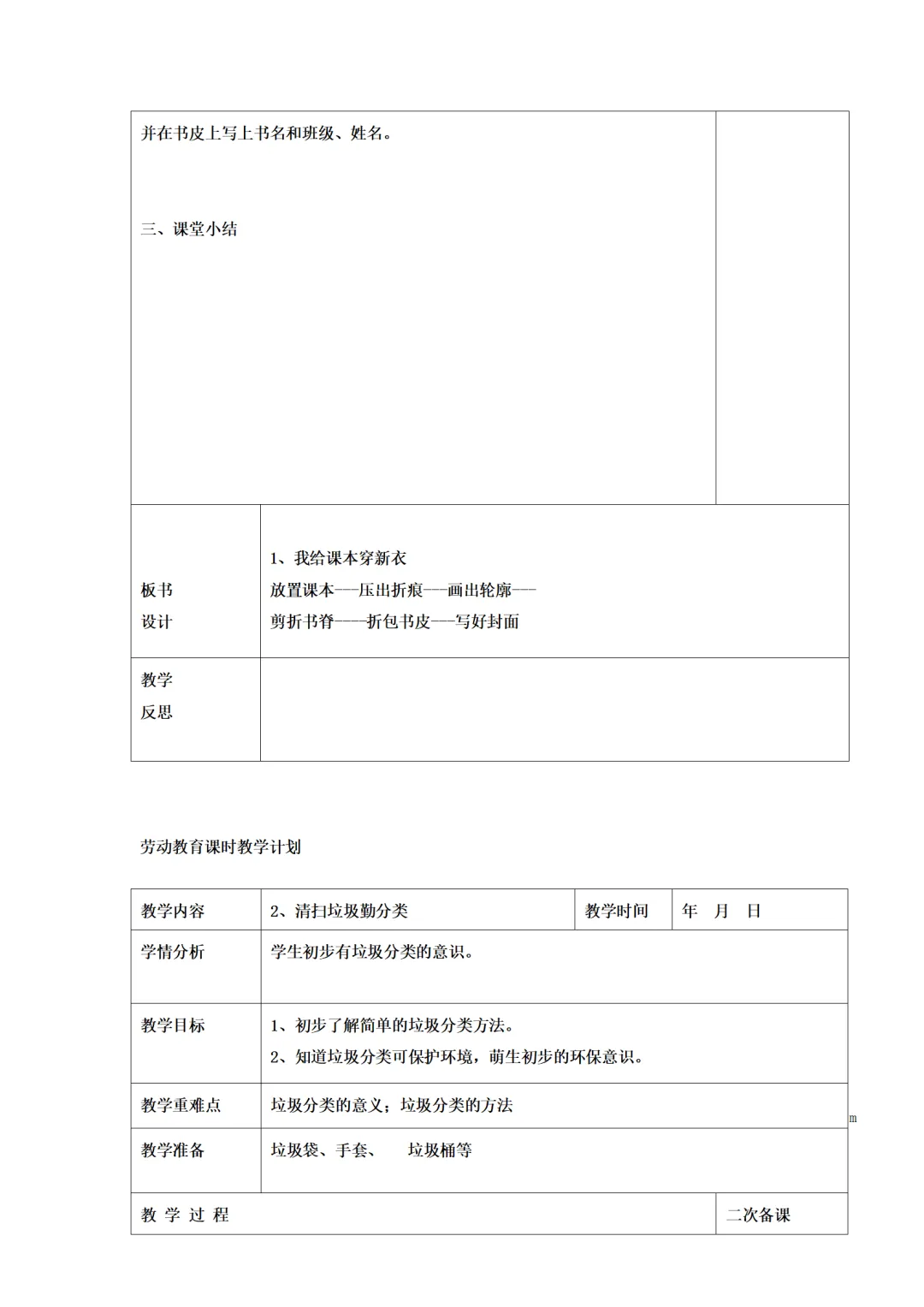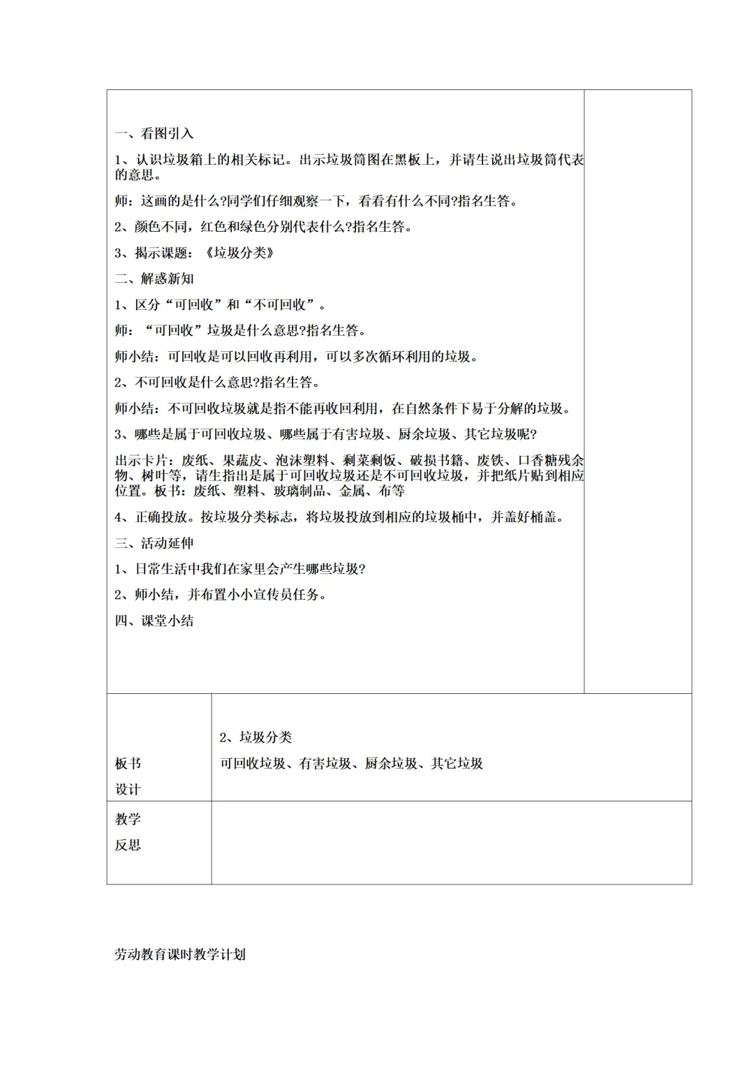 小学劳动一年级下册 教案(鄂教版),可下载打印!