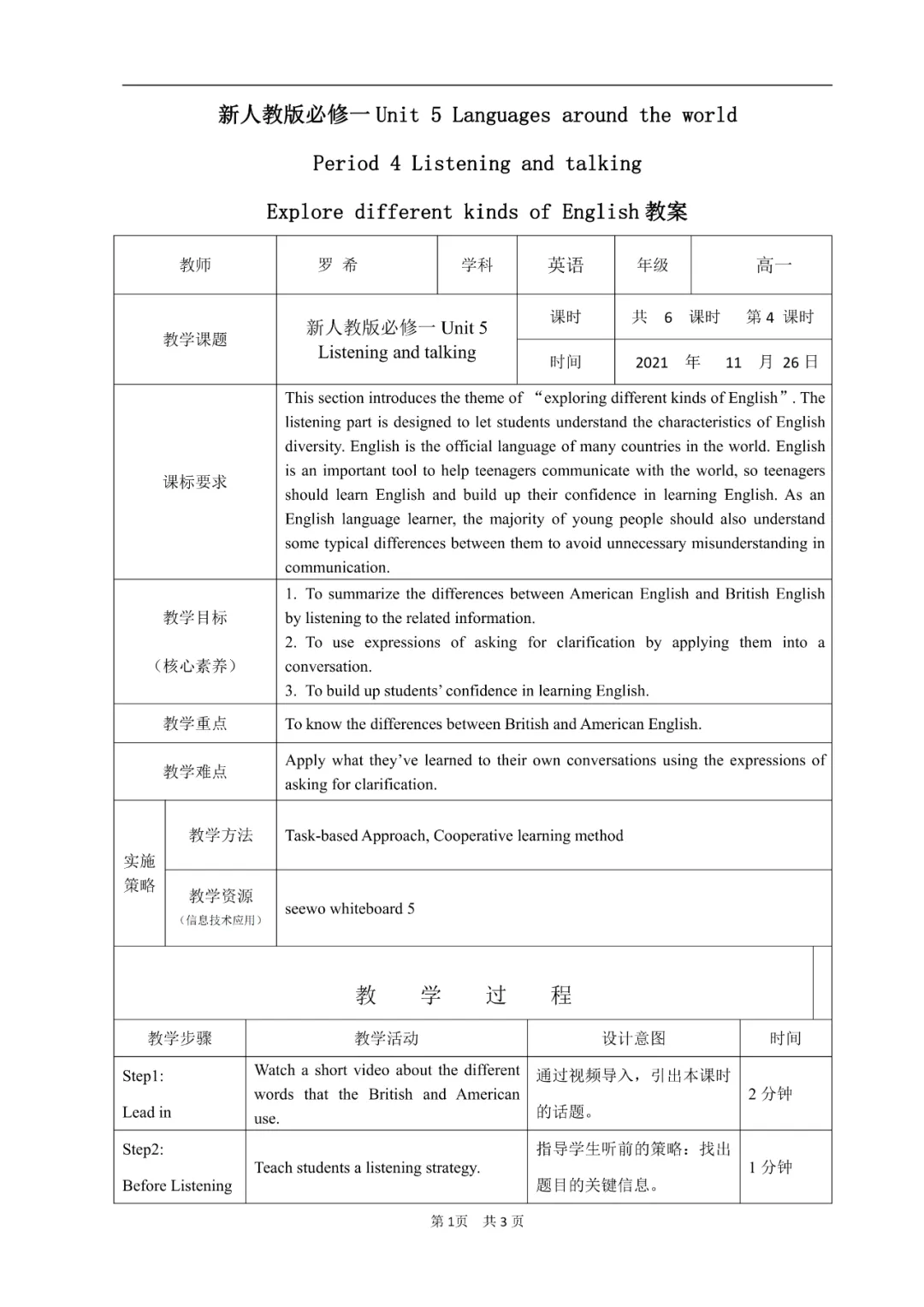 >现场授课课件:人教版必修第一册 Unit 5 Listening and Talking (江西 罗希)
