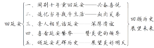 【初读课文,整体感知】 1.诗歌共分为五小节,这五小节分别写了什么内容? 第一小节:阔别十年重回延安;第二小节:追忆当年战斗生活;第三小节:亲人相见话延安;第四小节:喜看延安今繁华;第五小节:颂延安光辉历史。 2.试想想诗人写作这首诗抒发思想情感的线索是什么? 讨论、明确:全诗以诗人离别10年后重返延安的所见所闻所想为线索。 【细读课文,仔细品味】 1.作者在第一节中是怎样通过一系列动词表现情感的? “抓”“贴”等逼真的动作,表现了诗人回到延安时的激动情景。“双手搂定宝塔山”的“搂”字,写尽了作者对延安的怀念。“唱”“笑”“招”具有拟人的色彩,渲染了欢乐的气氛。最后一个“扑”字,强烈、准确地表达出作者的想念。 2.第二节中,“二十里铺送过柳林铺迎,分别十年又回家中”在结构上有什么作用? 承上启下。连举两个地名,表现出延安人民当年相送、今日远迎的深深情意。诗人深感延安人民的至情,觉得回到了久别的家中,由此自然过渡到忆写当年的延安生活。 3.第三节是如何描绘诗人和亲人热烈欢聚的场景的? 首先,诗人通过描写延安的乡亲盛情接待诗人的场景表达炽热的感情。如写亲人欢聚的场面,突出了烧热的炕、地上生起的木炭火等。接着,诗歌描写了老、中、青三代人与诗人的对话,突出亲人团聚的亲切。最后,运用夸张、比喻的手法,“一口口的米酒千万句话,长江大河起浪花。”话题由延安飞越千山万水,内容从全国形势到汹涌澎湃的长江、黄河,展现今日中国可喜的变化。 4.第四节运用了什么修辞手法描绘延安城秀丽如画的新面貌? 排比、比喻。主要使用整齐的排比句,使延安欣欣向荣的新姿跃然纸上。此外,还使用了比喻的修辞,如“蓝天大明镜”,表达了作者浏览新城的兴奋和喜悦。 5.第四节把延安比作母亲抒发了诗人怎样的情感? 把延安比作母亲,无限亲切,抒发了作者对延安的深厚情感和对延安旧貌换了新颜的由衷喜悦和歌颂。 6.作者在第五节中除了歌颂延安人民对中国革命的伟大贡献,又表达了自己内心怎样的愿望? 这一节艺术地概括了中国人民在中国共产党的领导下,取得抗日战争和解放战争的伟大胜利,建立了新中国。此节呼应前文,热切期望英雄豪迈的延安人民在社会主义革命和建设中永远站在最前列,表达了作者内心的愿望:继承革命传统,发扬延安精神,奋勇前进。 【品味特色词语】 这首诗的叠字运用得很有特点,有表事物的,有表数量的,有表情态和颜色的,请从诗找出十几个叠语,并加以分类,体会这些词语的特色。 表事物的:树根根、羊羔羔等。 表数量的:几回回、几根根、一口口、一条条、一排排、一座座等。 表情态的:紧紧、飘飘、团团、高高、滚滚等。 表颜色的:白生生等。 叠字词语的大量使用,表现了陕北口语的特色,给人一种自然淳朴之感,为形象、生动地抒发诗人热爱延安、赞美延安的强烈感情起了很大的作用。 【感悟精彩句子】 “米酒油馍木炭火,/团团围定炕上坐”“满窑里围得不透风,/脑畔上还响着脚步声”生动地描写出亲人团聚的热烈场景,品析其特点。 “米酒油馍木炭火,/团团围定炕上坐”是从视觉来描写的,通过富有地方色彩的物品和众人围坐的情景,营造出团聚场面的亲切气氛。 “满窑里围得不透风,/脑畔上还响着脚步声”是从听觉角度来描写的,用“不透风”这个补语形容“围得”,表现了来相见的人之多,用“脑畔上”这个状语修饰“还响着脚步声”。 【把握文章主旨】 作者在诗中写了哪些内容?表达了什么情感? 诗人通过对回延安的所见、所闻、所想和对延安巨变的描写,歌颂了中国共产领导下的延安人民在中国革命和社会主义建设中做出的巨大贡献和取得的辉煌成就,抒发了诗人重游革命圣地的无限喜悦和对延安、延安人民及革命事业的无比热爱之情。 |