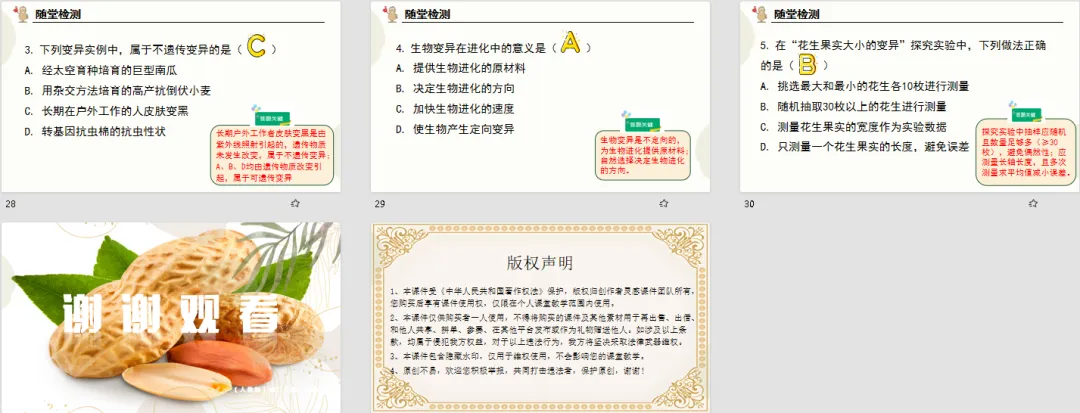 哪怕是用课件展示实验数据进行模拟分析,也让学生掌握了抽样、测量、数据分析的核心技能,还理解了 “求平均值减小实验误差” 的科学道理。这个环节不仅突破了 “实验设计与数据分析” 的教学难点,更重要的是培养了学生严谨的科学探究态度,这才是生物课的核心素养所在!