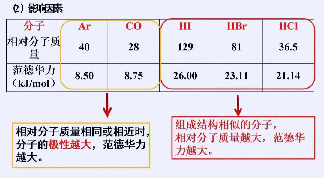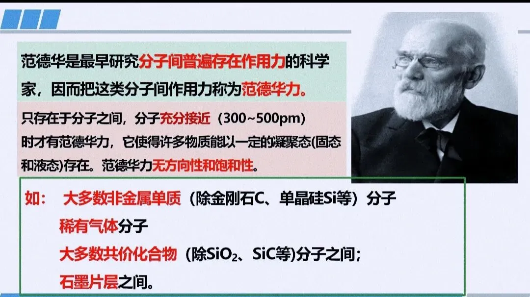 1. 分子间作用力(范德华力、氢键)