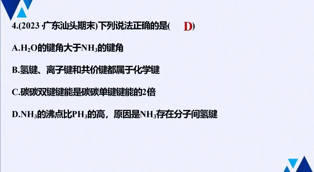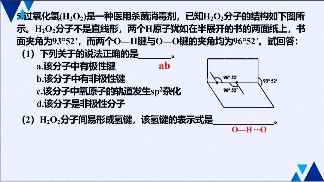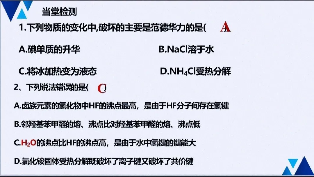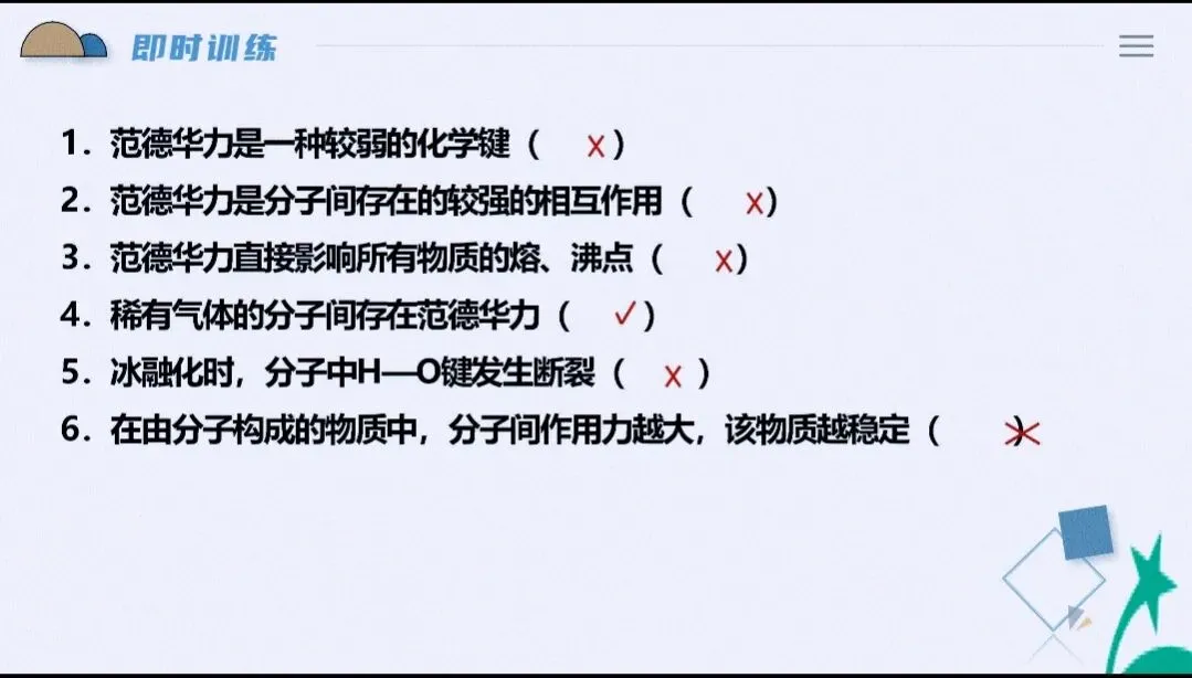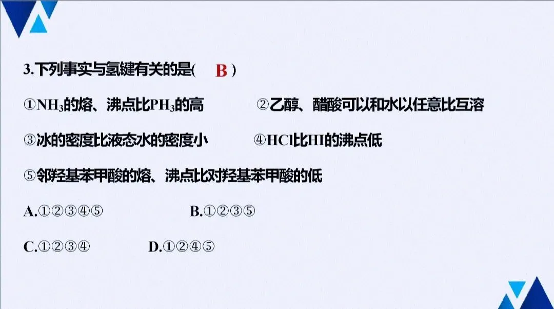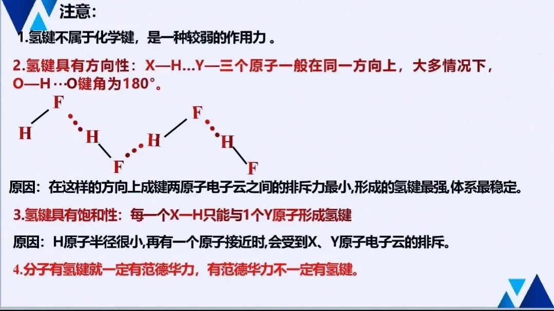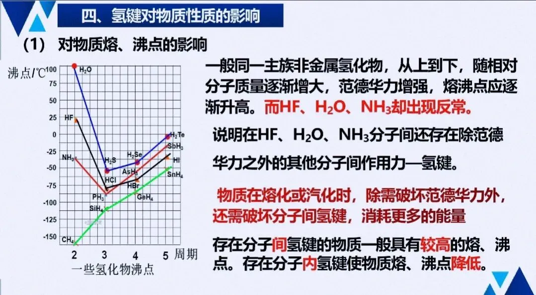 - 实验与性质:解释物质溶解性、熔沸点反常现象(如H₂O、NH₃、HF),常作为原理型实验题的答题依据。