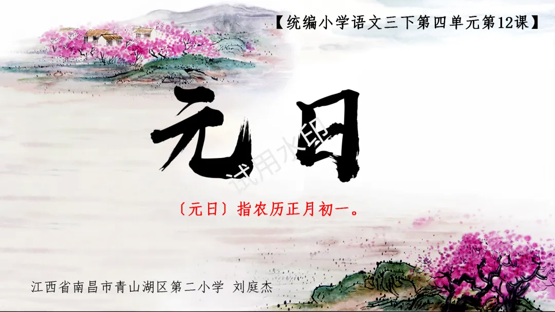 【自制课件】统编三下 第四单元12.《古诗三首·元日》