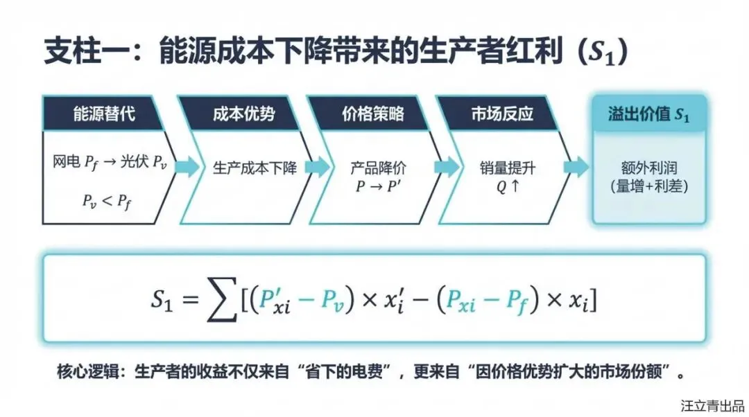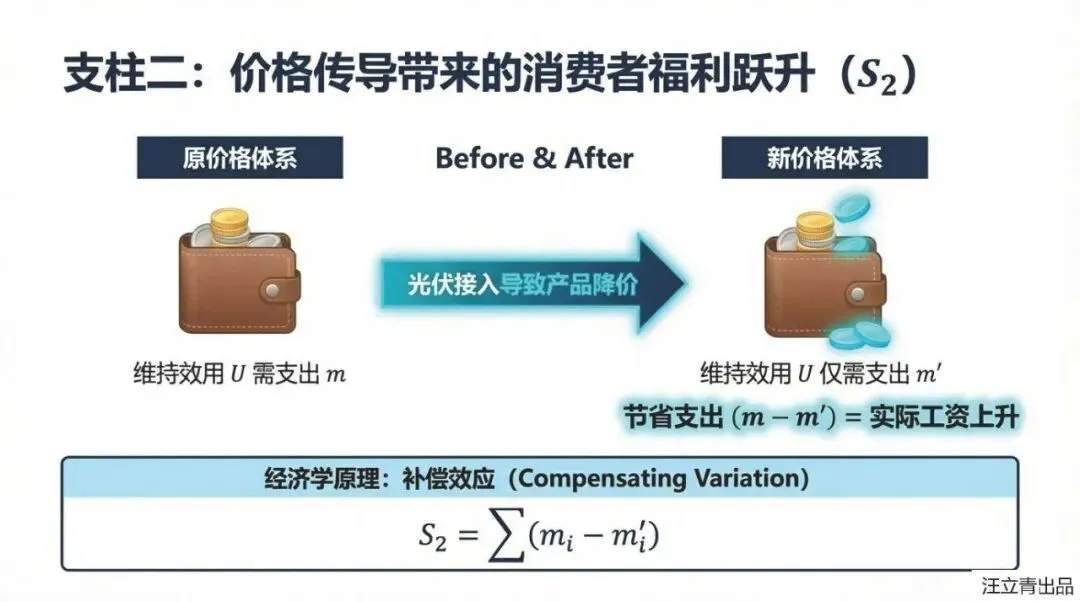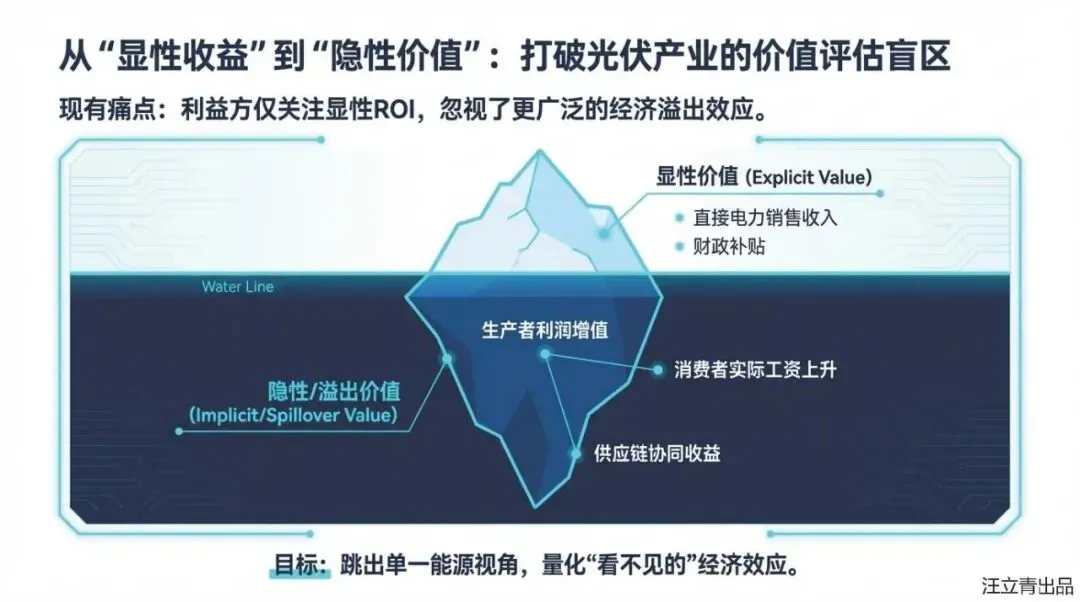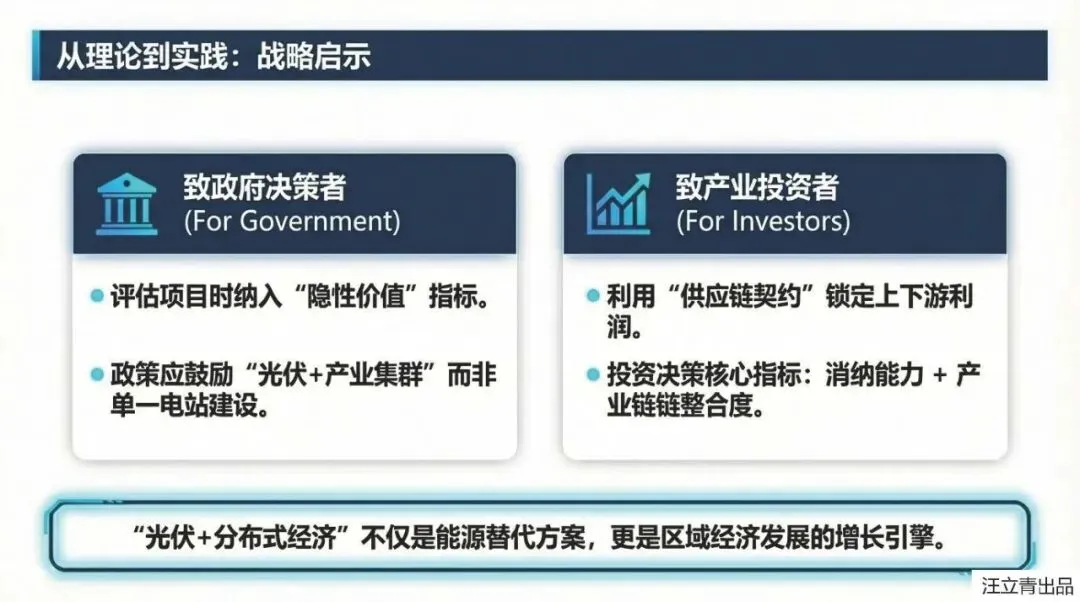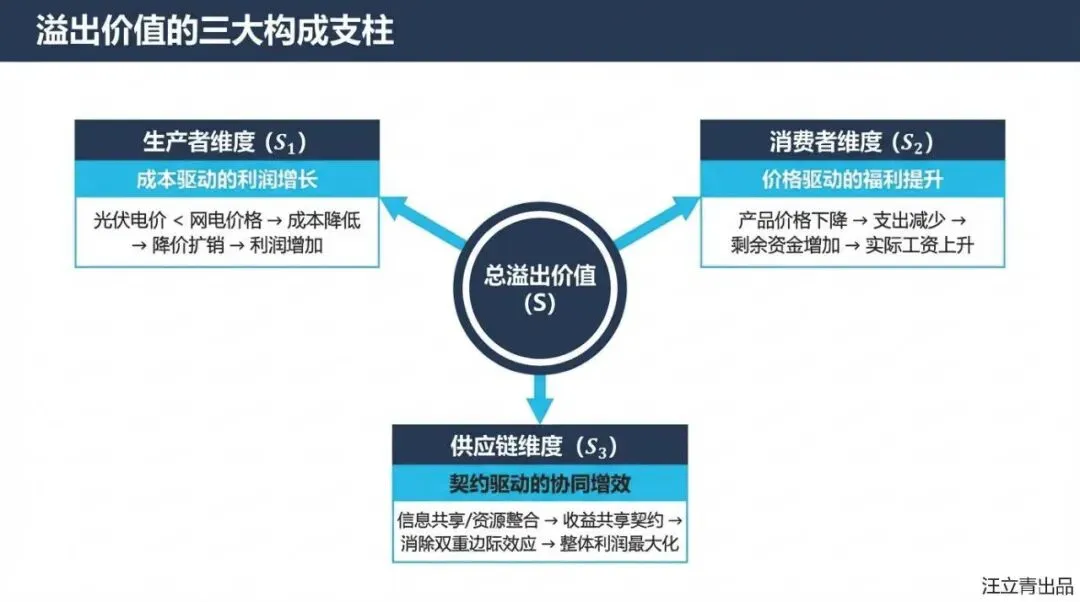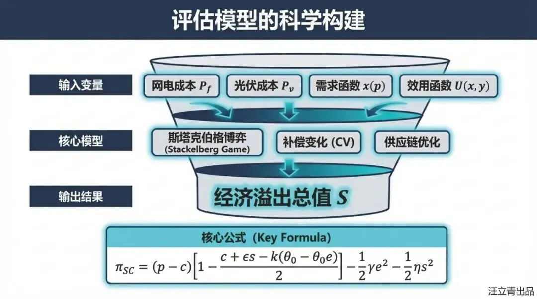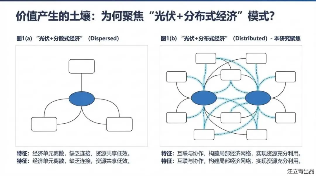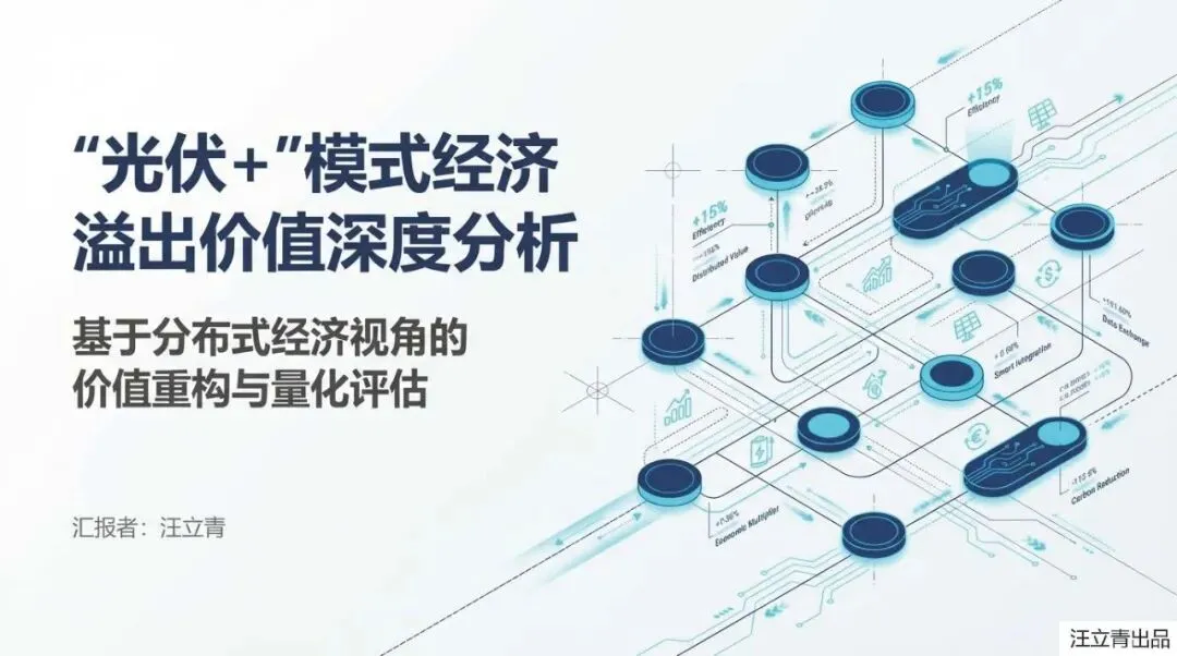 这份课件以“光伏+分布式经济”模式为研究对象,构建了经济溢出价值评估模型,旨在揭示该模式在显性投资回报之外的隐性经济价值,以解决当前对“光伏+”收益感知不足进而影响投资积极性的问题。文章界定了“光伏+分布式经济”不仅是光伏与产业的简单结合,更强调经济单元间的互联与协作。其核心思想基于微观经济学理论,将经济溢出价值分解为三个主要构成部分:一是生产者因使用低成本光伏电能降低生产成本,进而通过降价扩大销量所获得的额外利润;二是消费者因产品价格下降而减少支出,在维持原有效用水平下相当于实际工资的增加;三是供应链上下游通过签订成本分担与收益共享契约,优化资源配置所带来的整体利润提升。文章利用效用函数和需求函数构建了定量模型,并通过“光伏+农业”算例验证了其可行性,结果显示供应链合约产生的溢出价值最大。该研究论证了“光伏+”模式能为生产者、消费者及供应链带来显著的额外经济红利,为政府制定产业政策和投资者决策提供了新的理论依据。