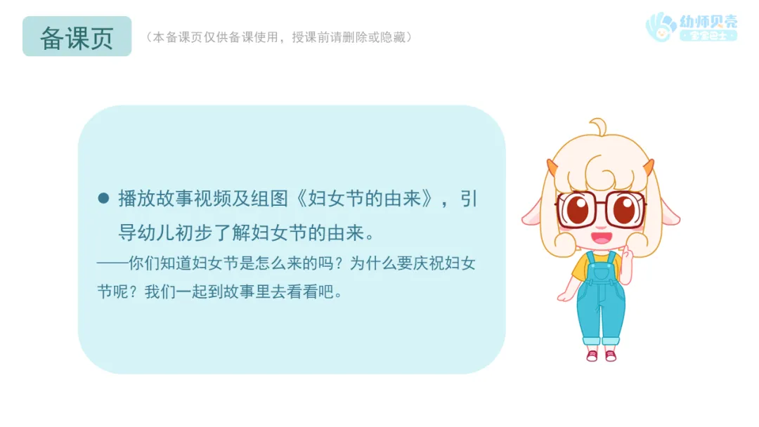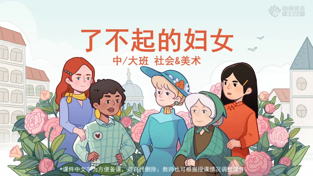 l课件准备:“妇女节”图片、“谁是妇女”组图;《妇女节的由来》故事视频;“妇女节的由来”组图;“妇女的力量”组图;“妇女节花束”组图。