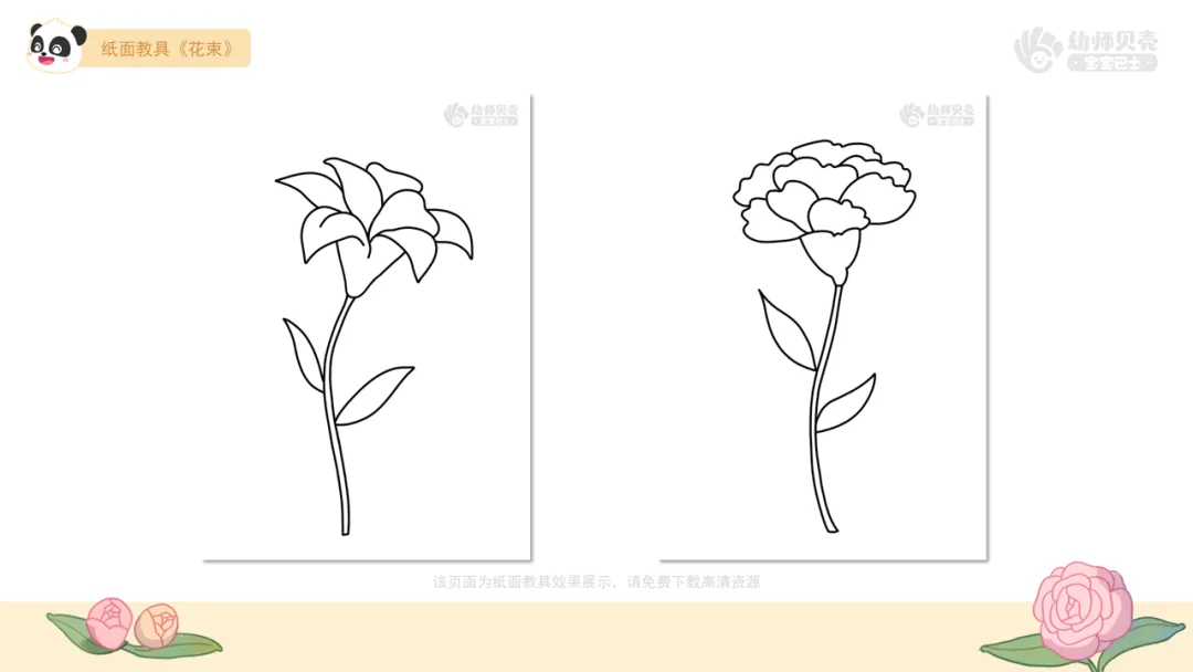 Ø活动建议:1.本环节提供花束纸面教具,教师可根据实际情况提供给幼儿,供幼儿上色、剪裁。