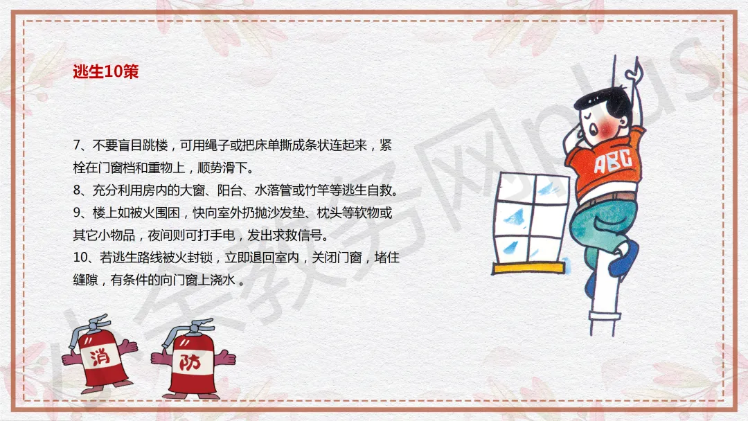 下面是这份消防安全知识教育科普 PPT 课件的预览,共 13 页。