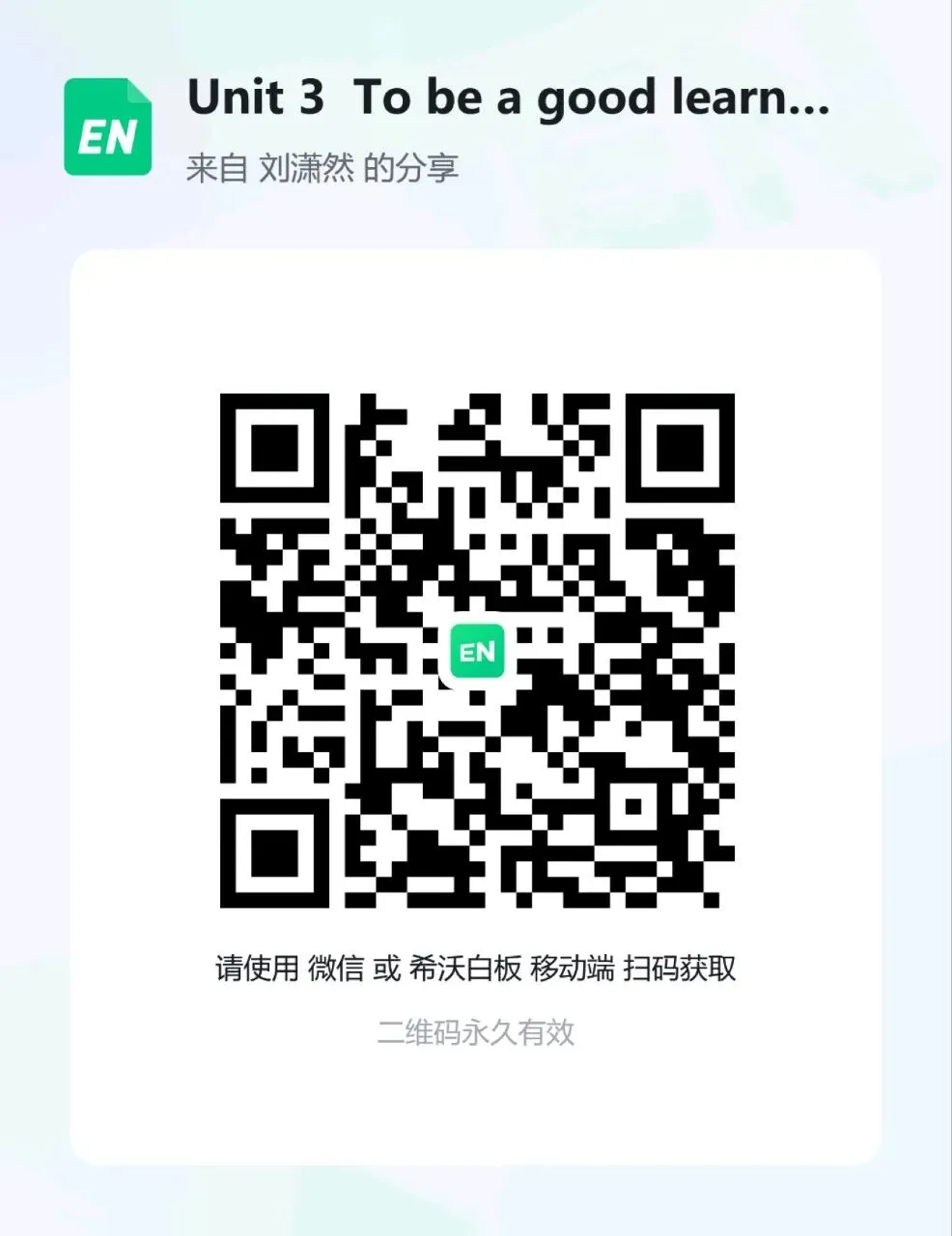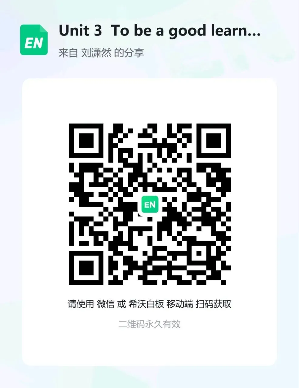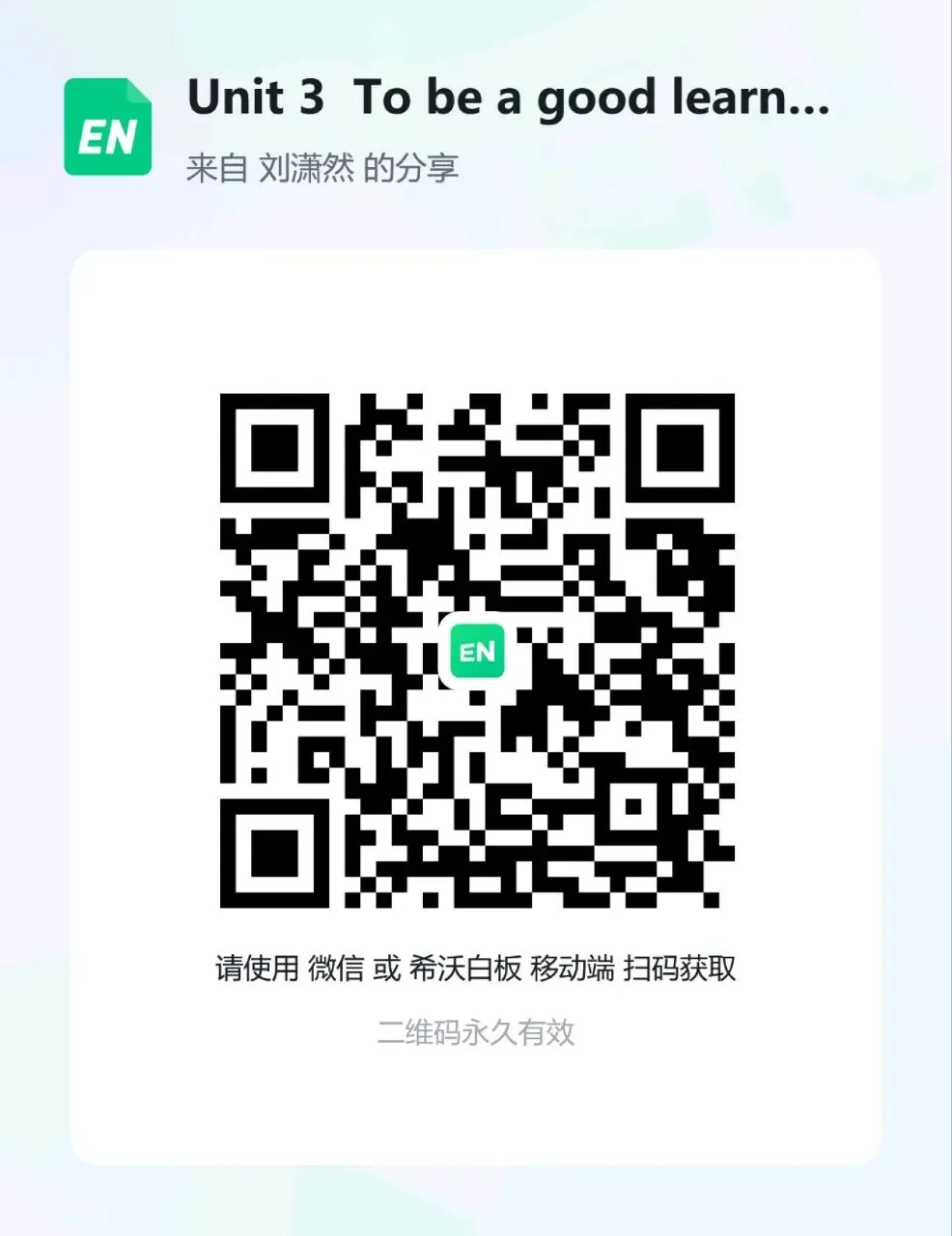 【希沃白板】课件分享 : 《Unit 3 To be a good learner 【第一课时】》https://13.r302.cc/xMYlpKv?platform=enpc&channel=copylink打开链接可直接预览课件