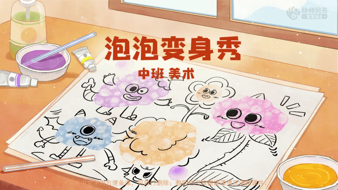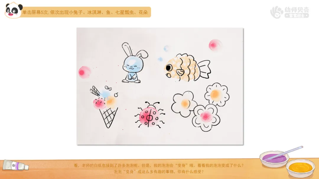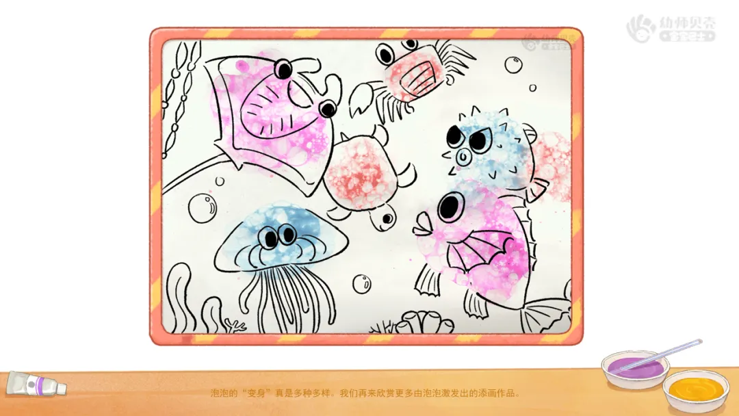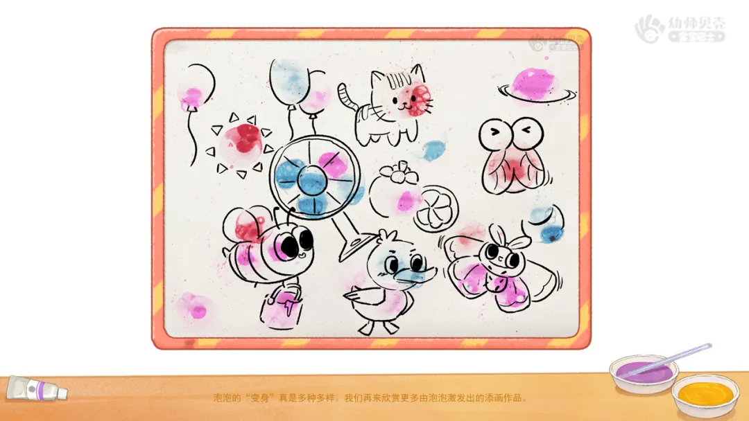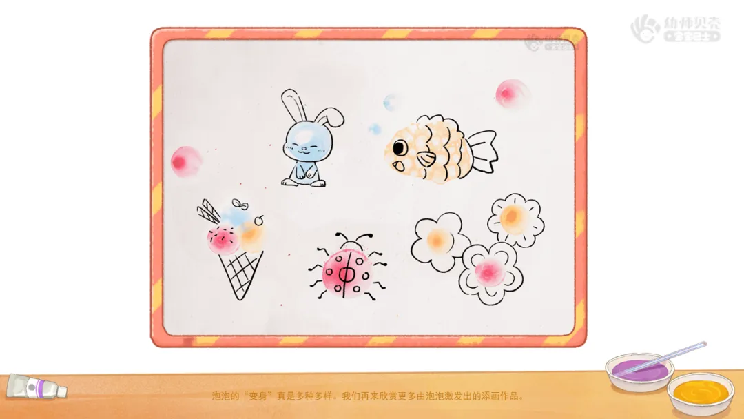 小结:给泡泡添上有趣的物体形象,能够变出有趣的事物呢。