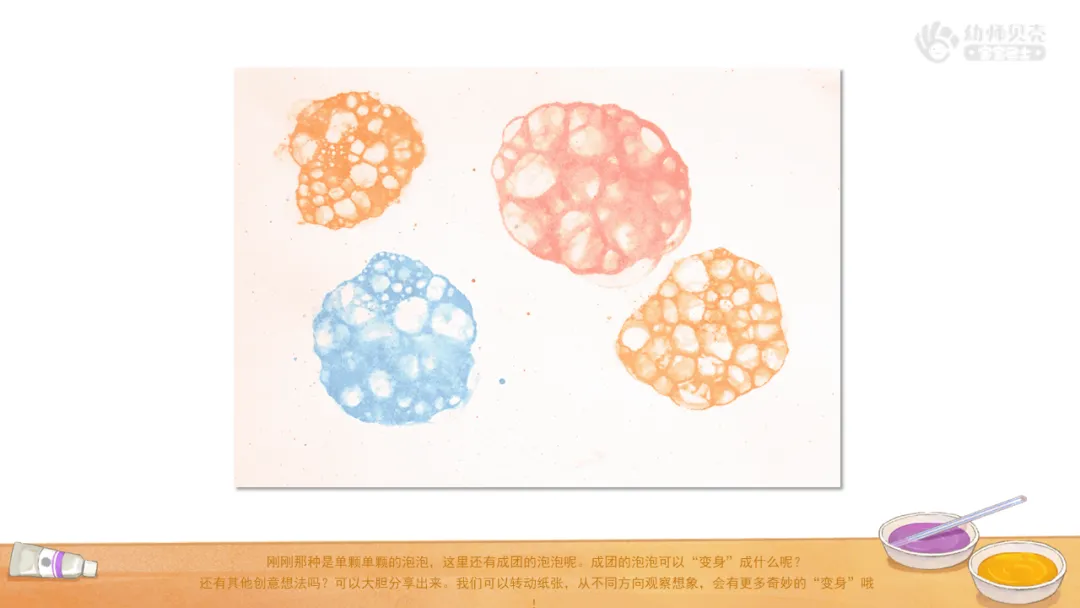 ——刚刚那种是单颗单颗的泡泡,这里还有成团的泡泡呢。成团的泡泡可以“变身”成什么呢?