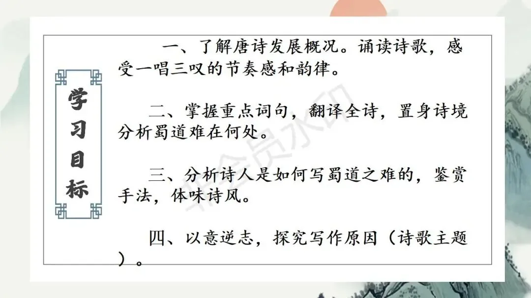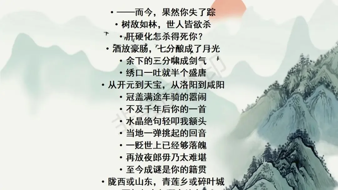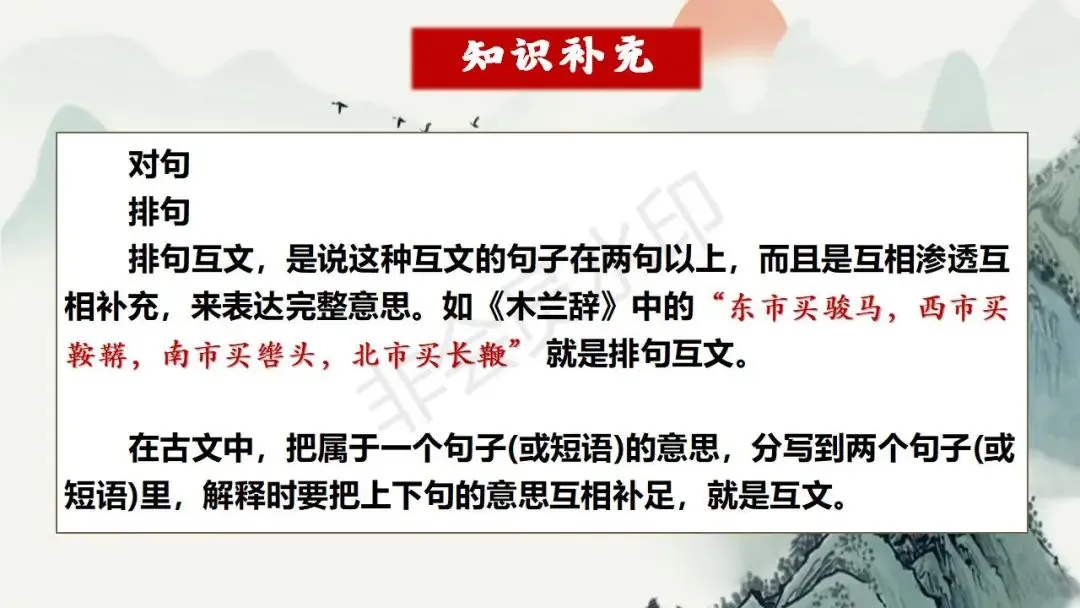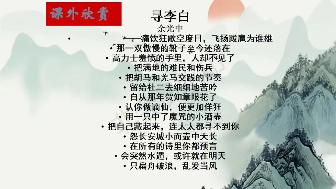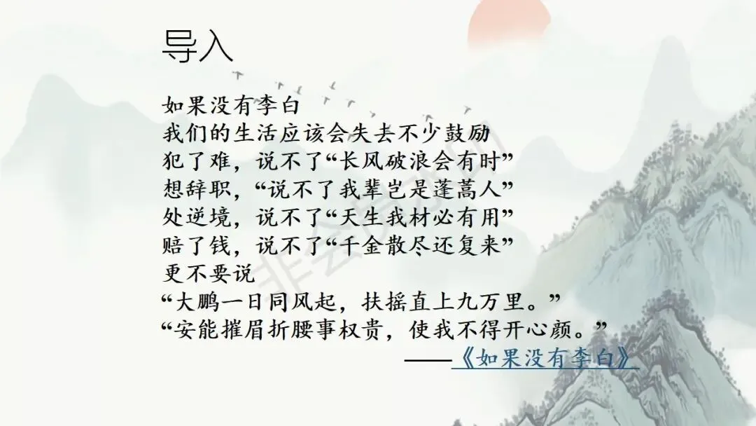 小编是正在努力的、热爱语文教学的一线语文教师,公众号所发布的教学资源,都是小编上课使用的,欢迎大家批评指正;教学课件内容有我们教研组集体备课的内容结晶,也有部分借鉴了名师的构思和创造,由于涉及面广,没能注明出处,敬请原谅,如有侵权,请联系小编删除;所发资源尽管参考了不少资料,但绝不照抄照搬某一资料,任何一个教学资源都是小编亲身授课使用的,可以直接用于教学。