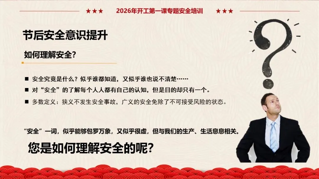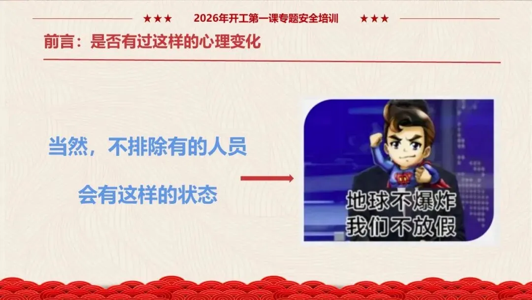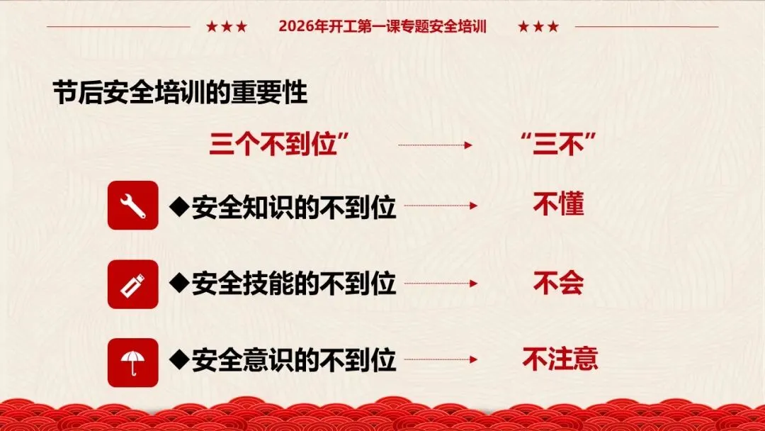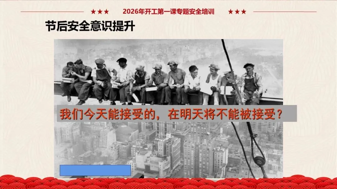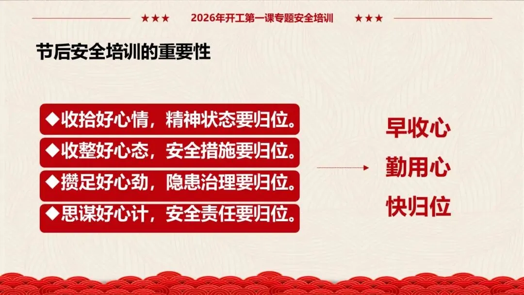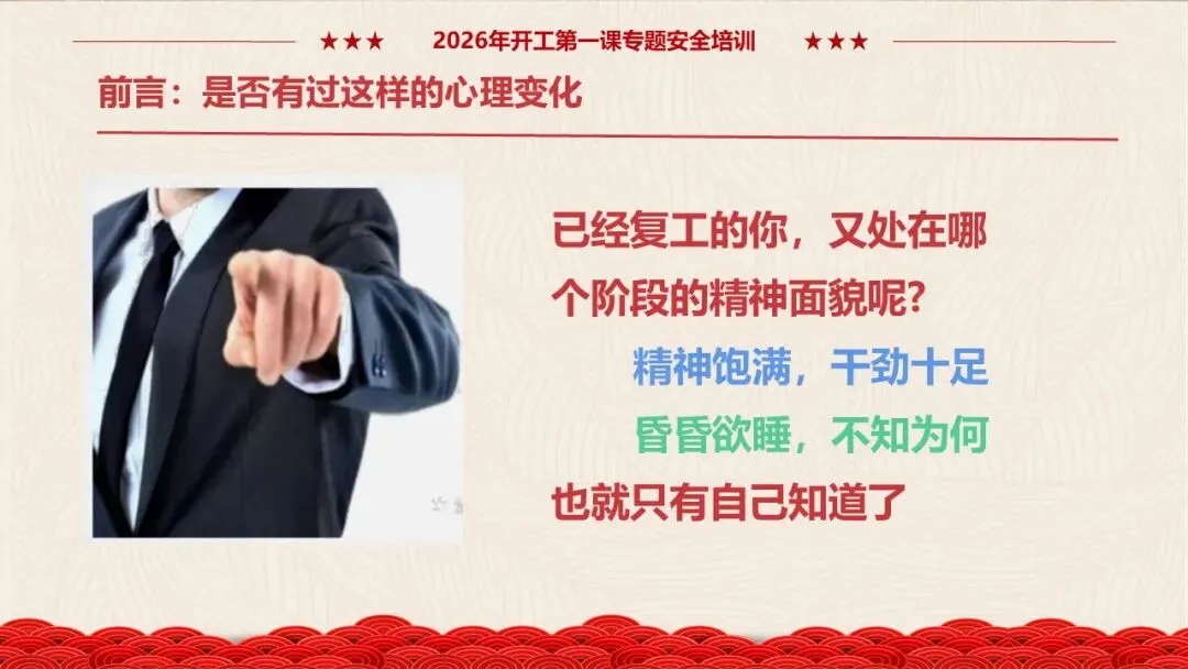 刚刚过完幸福、热闹的春节,现在又陆续返回工作现场,但许多人还沉浸在节日欢乐的气氛之中,生活节律还没有调整过来,自由散漫的心还没有收回来,主要体现在疲惫、情绪不稳定,人虽然到工作场所,但心还留在家里,思想不集中,这就是“节后综合症”,是很危险的隐患,是很容易发生事故的。