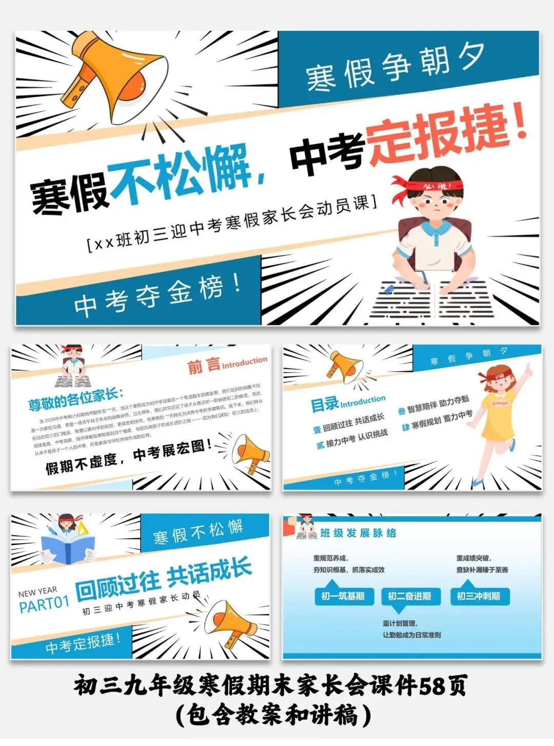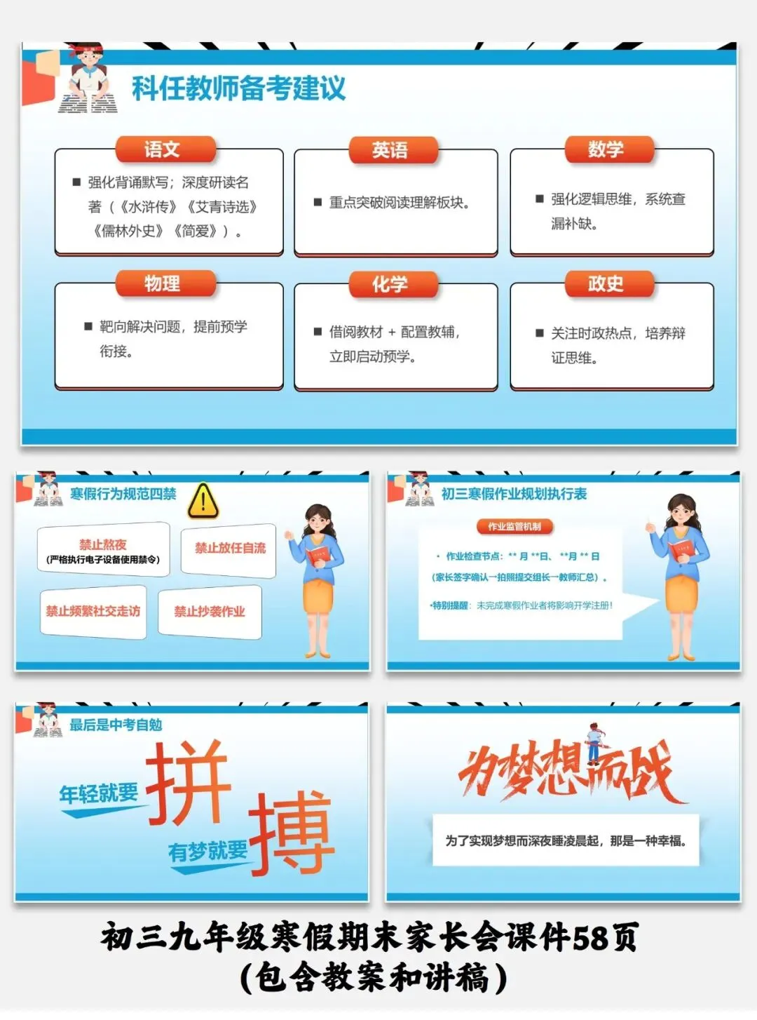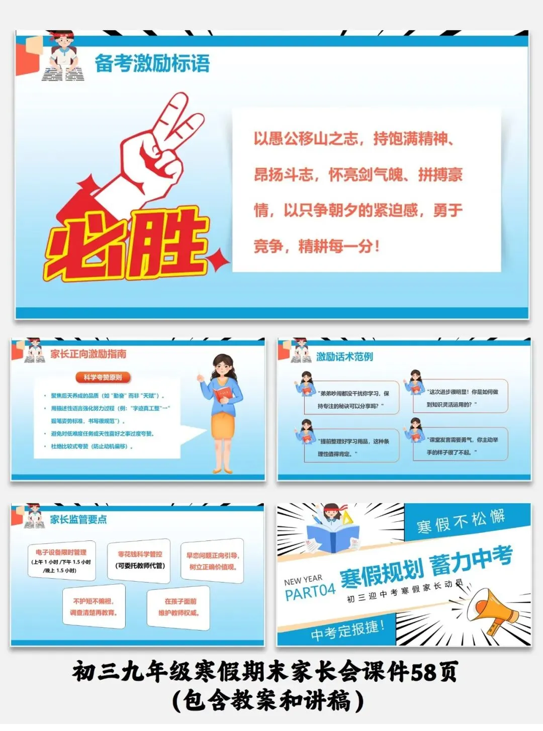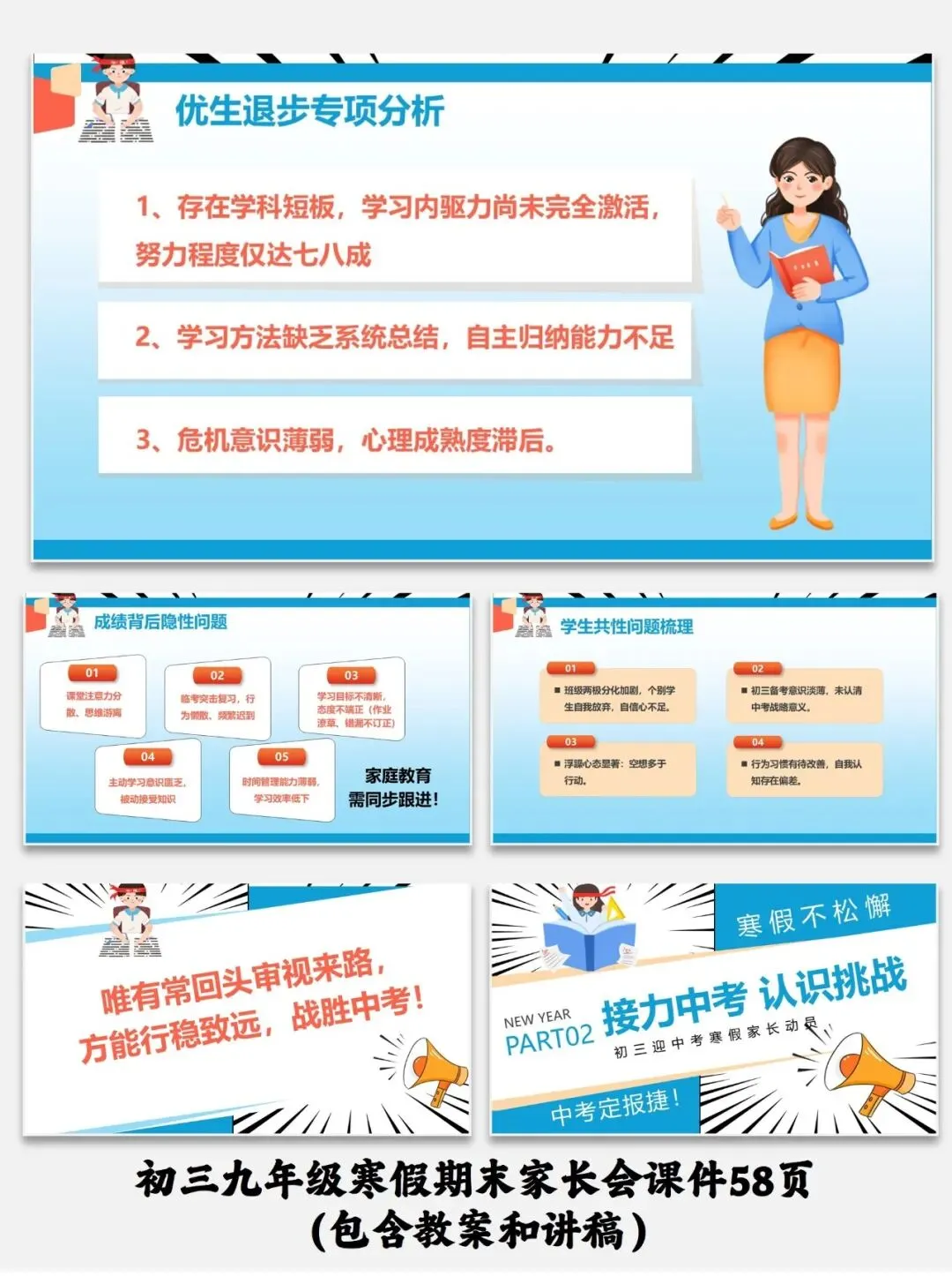 编号【214-1】初三九年级寒假期末家长会课件58页(包含教案和讲稿)