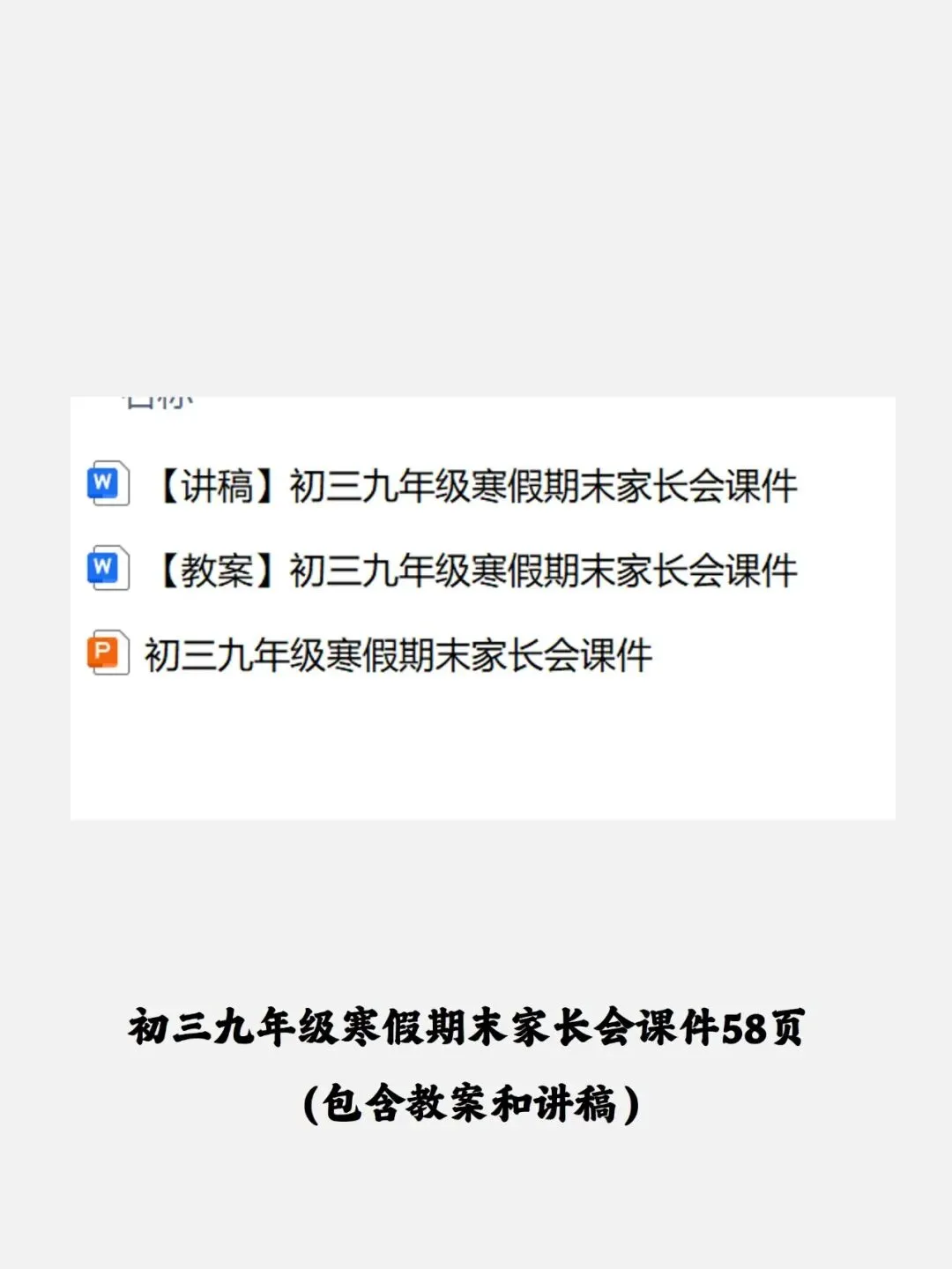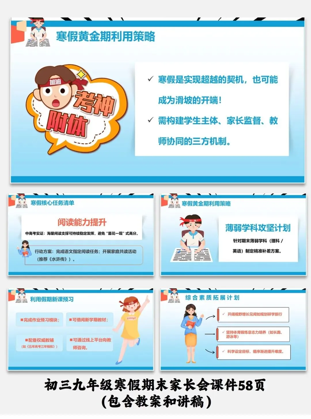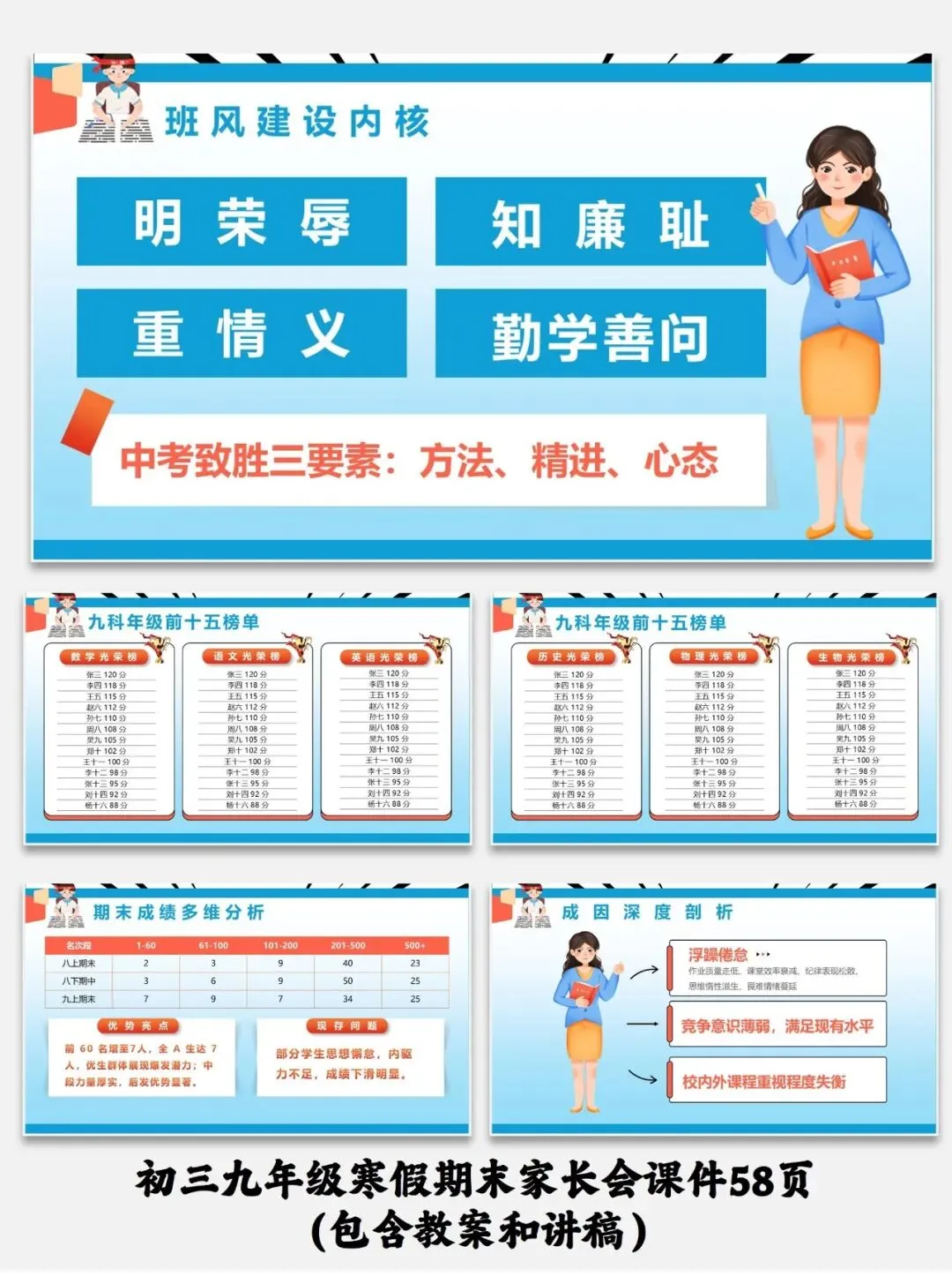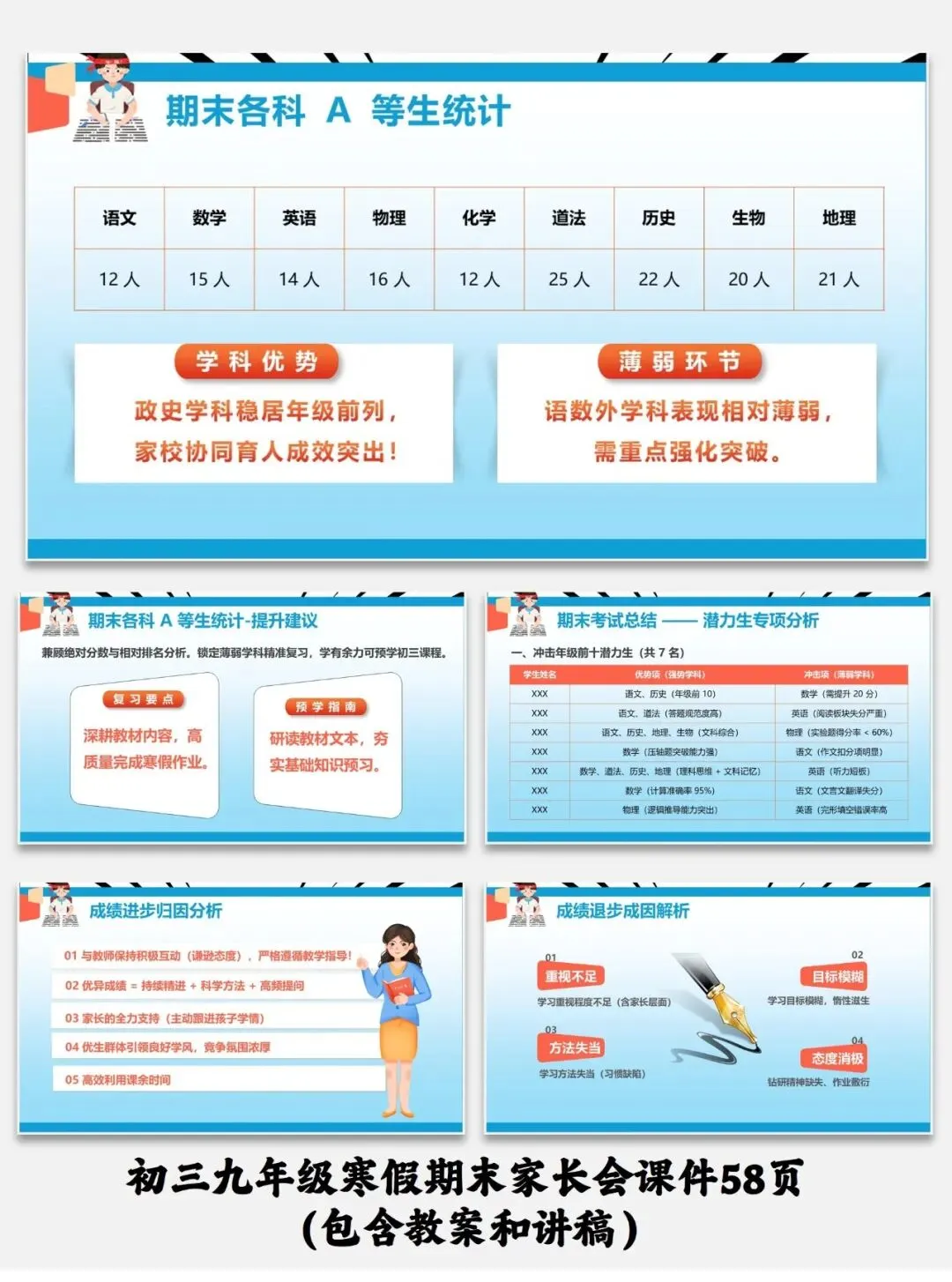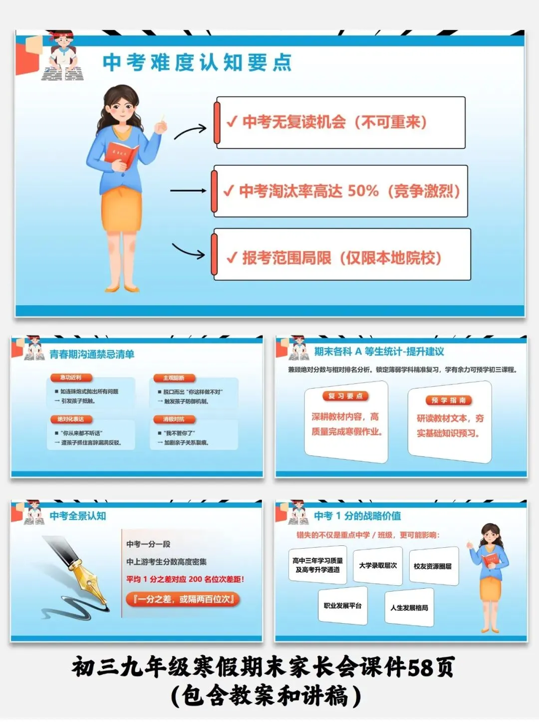 编号【214-1】初三九年级寒假期末家长会课件58页(包含教案和讲稿)