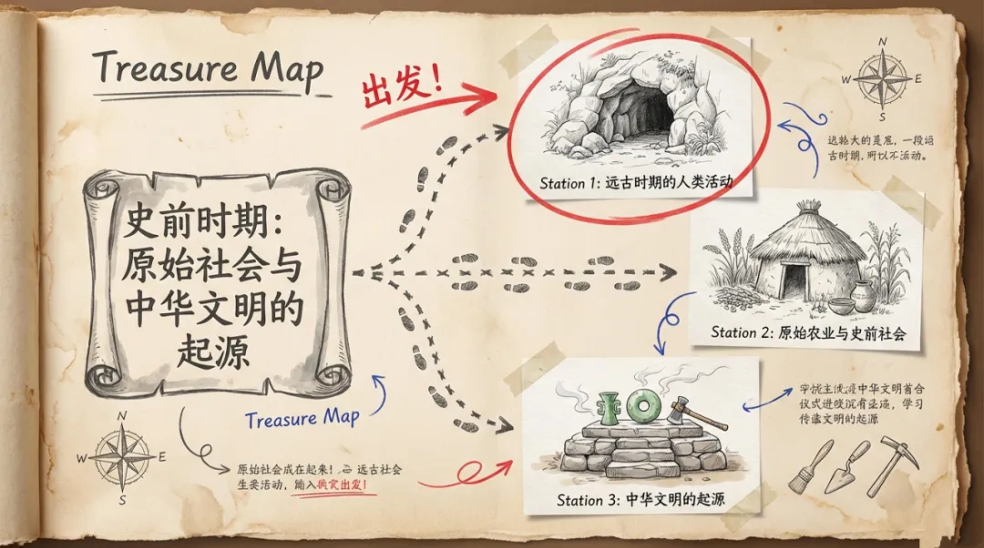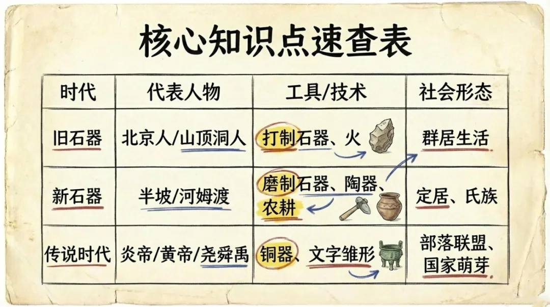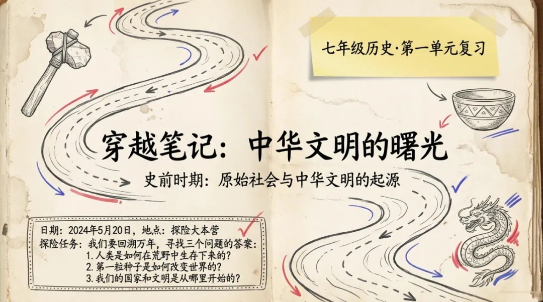 >[复习课件]手绘风 ·七上第一单元《史前时期:原始社会与中华文明的起源》