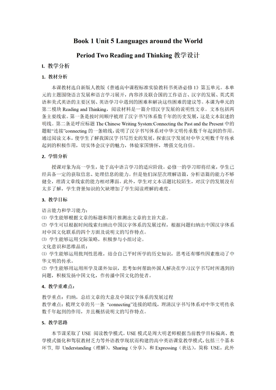 说课课件:人教版必修第一册 Unit 5 Reading and Thinking 说课 (宁夏 霍皓如)