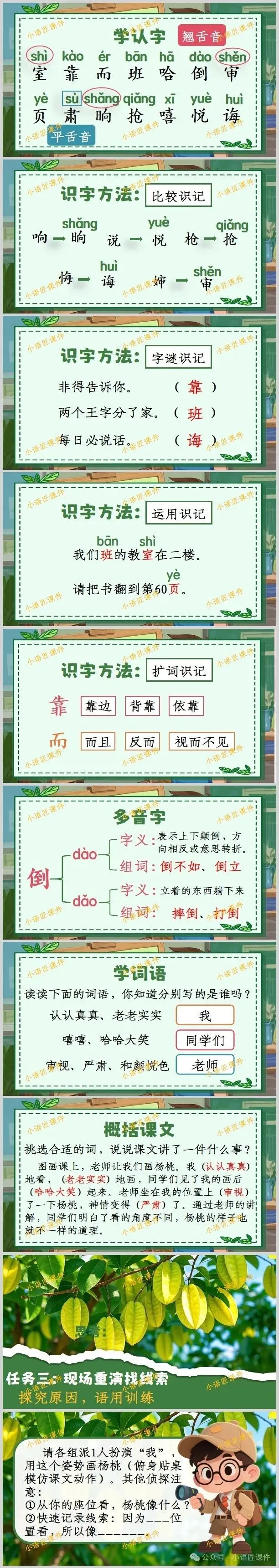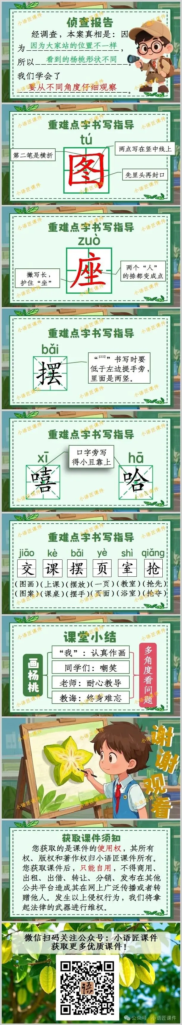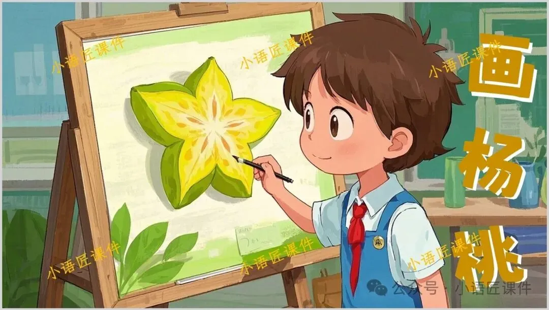 >【二下课件】情景设置:“小侦探破案记:为什么同一个杨桃大家画得不一样?”——《画杨桃》(+教学设计!)