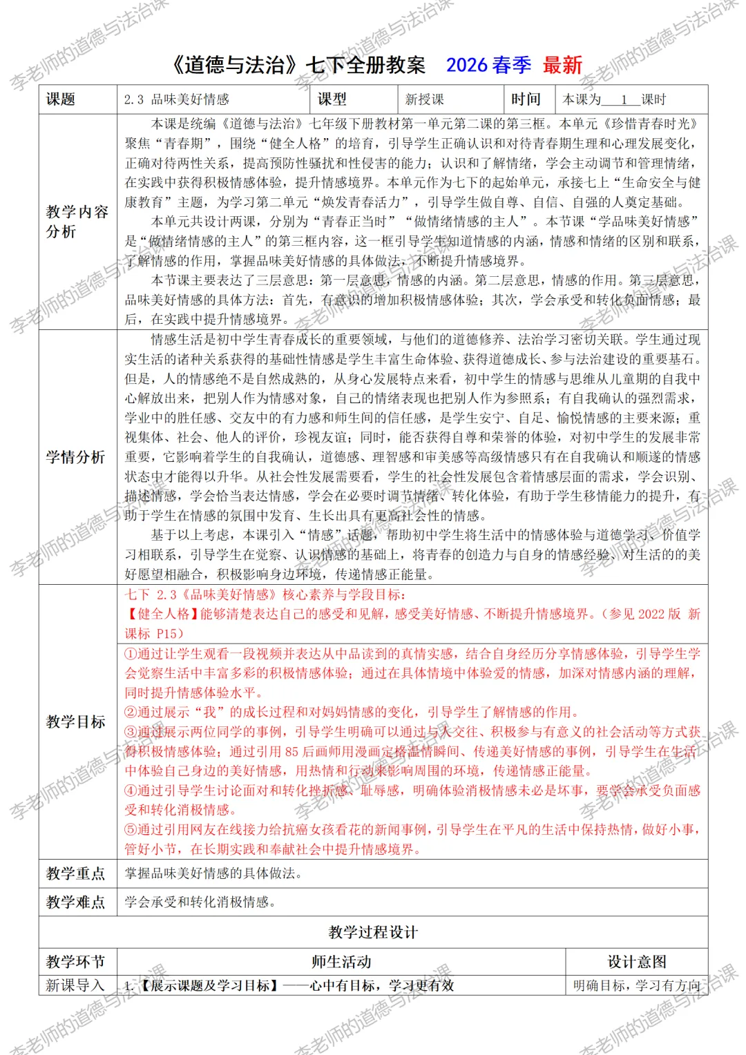 编者的话:李老师将连载2026春季《道德与法治》各年级的精品备课和学习资料。本资料为李老师原创,未经允许,禁止转载!
