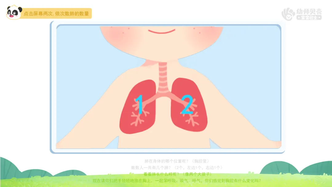 ——数数人一共有几个肺?(2个,左边1个,右边1个)