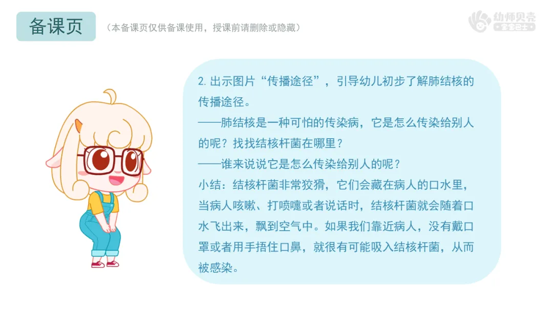 2.出示图片“传播途径”,引导幼儿初步了解肺结核的传播途径。