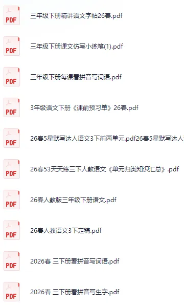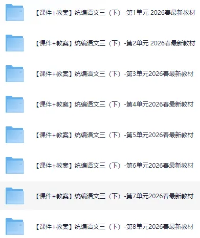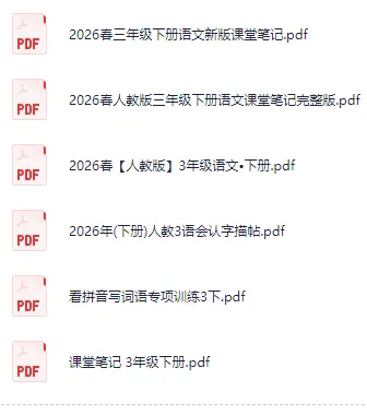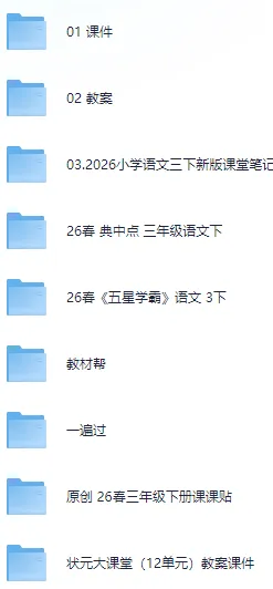 本文收集的教学资源是2026春新人教版三年级语文下册课件教案+课堂笔记+预习单+课本答案+教辅+专项训练+学霸笔记+基础通关+检测试卷习题+作业设计最新优质资源,全部存放于网盘,网盘部分资源截图如下: