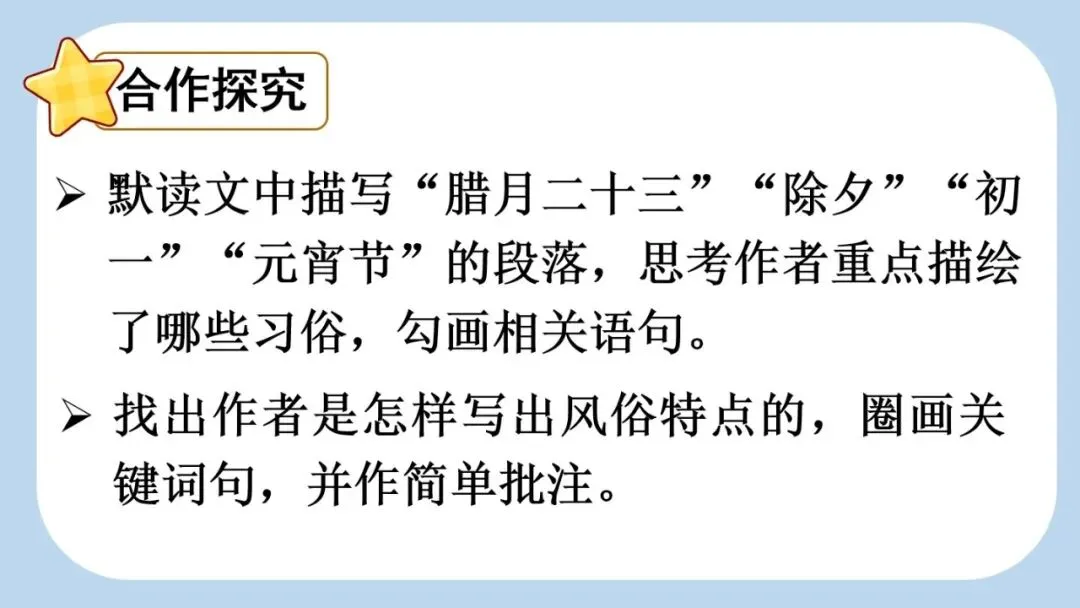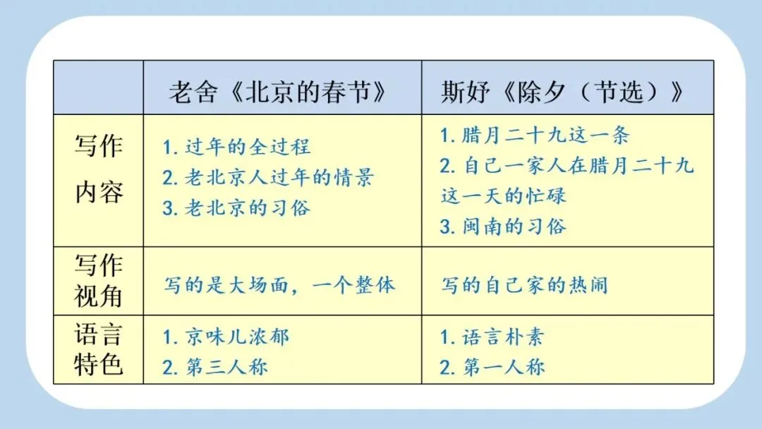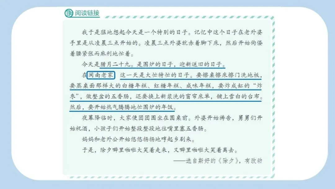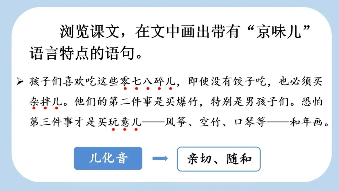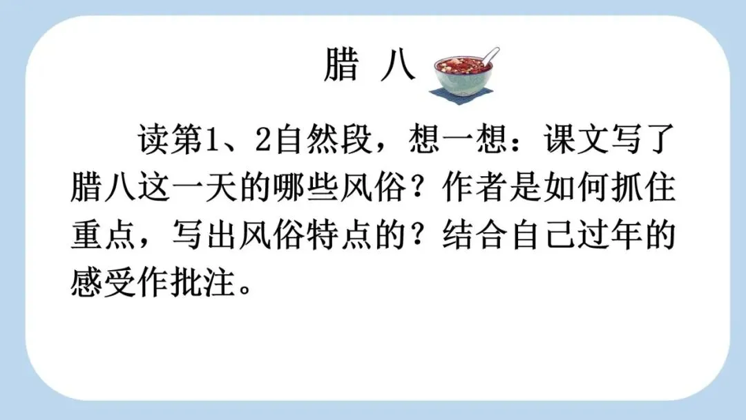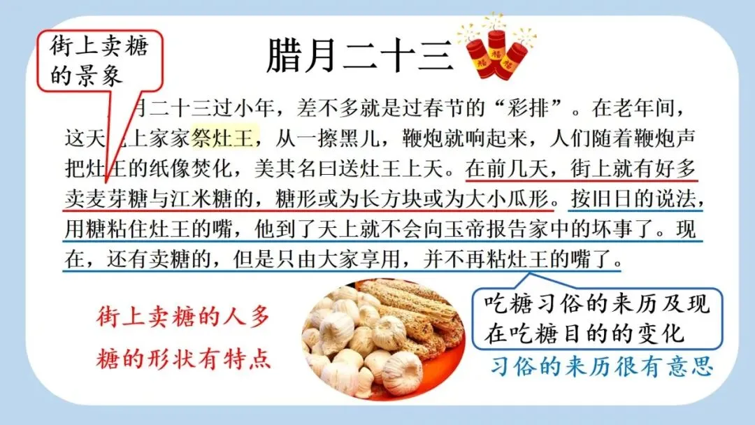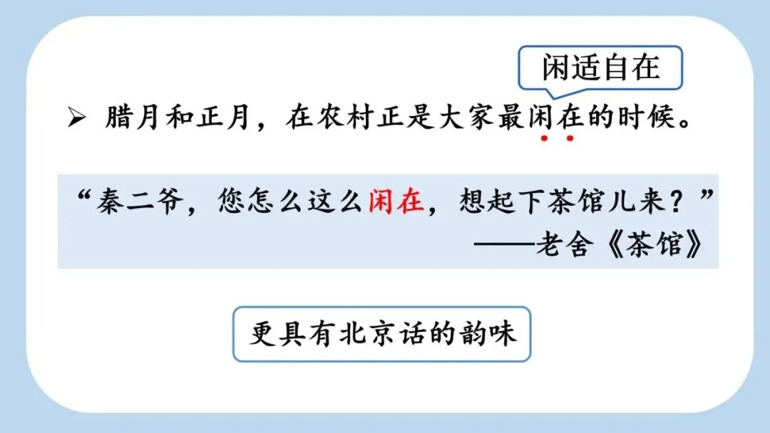 “腊七腊八,冻死寒鸦”,可老舍先生笔下的北京春节,却热火朝天。当除夕的鞭炮声响起,当家家户户拿出炖肉的铛,那股热闹劲儿就顺着纸墨,钻进了孩子们的心里。这个春天,邀您和孩子们一起,穿行在那条飘满粥香的胡同里,循着文字品味最地道的京味儿年俗。 从腊八的粥香到元宵的灯影,老舍先生笔下的年味,就在这一篇《北京的春节》里。想带孩子品出文字背后的民俗画卷吗?这套课件已为您一站式备齐——不只讲字词,更带学生透过文字,读懂老北京的人情冷暖与文化温度。