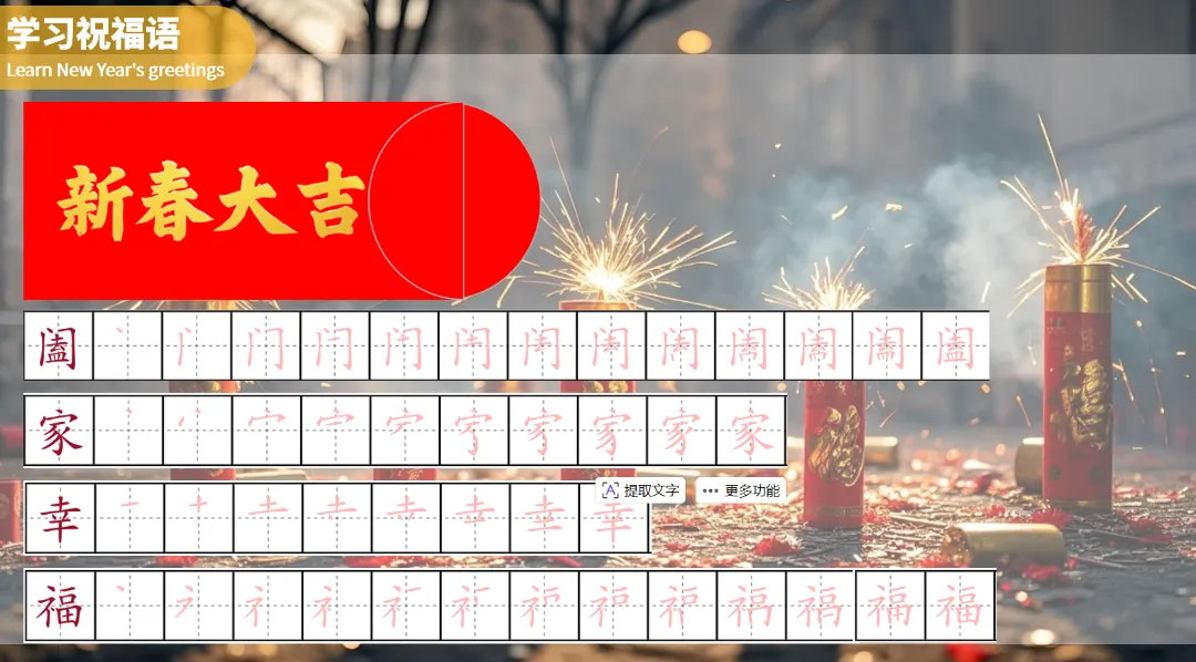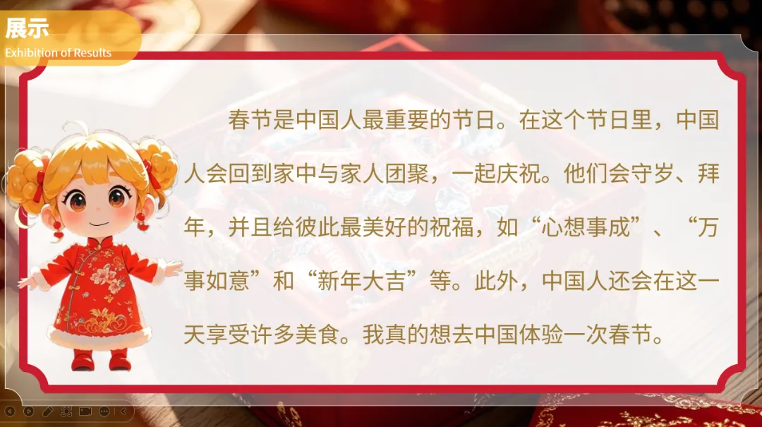 通过学习,学生们不仅能够掌握相关的语言表达,还能深刻理解春节在中国文化中的核心地位。