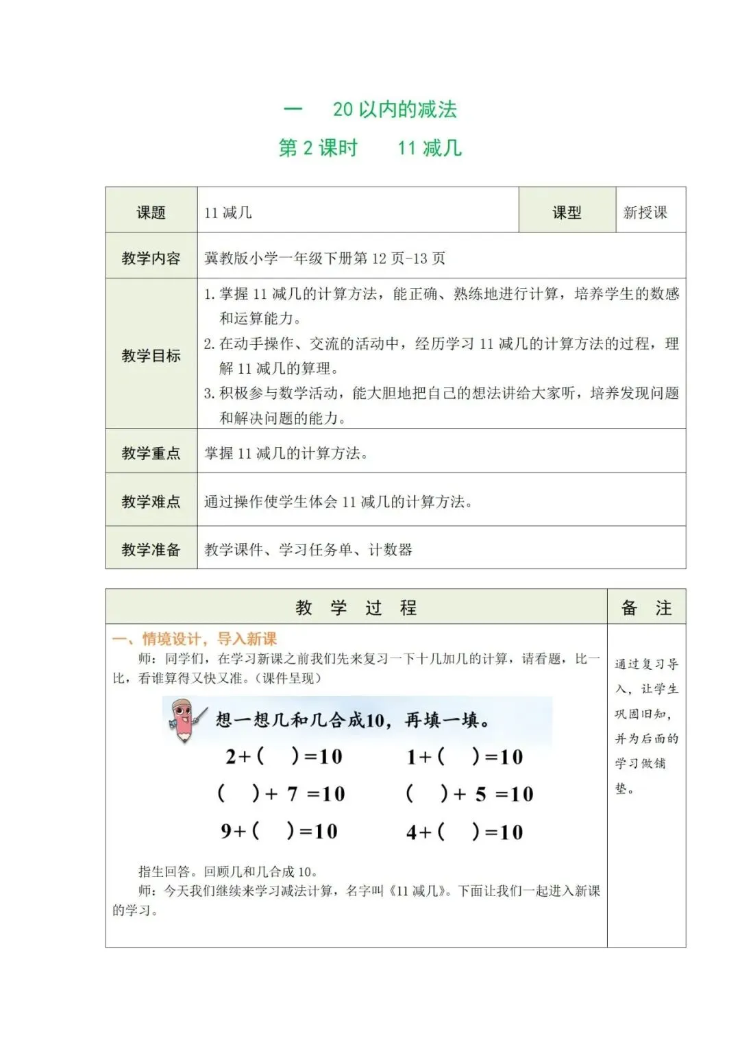 >26春冀教版《数学》一年级下册教案+课件(新教材),可下载!
