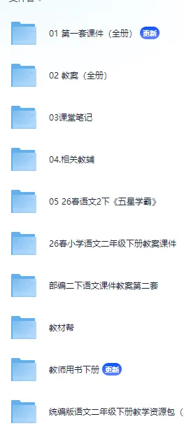 本文收集的教学资源是2026春新人教版二年级语文下册课件教案+课堂笔记+预习单+课本答案+教辅+专项训练+学霸笔记+基础通关+检测试卷习题+作业设计最新优质资源,全部存放于网盘,网盘部分资源截图如下: