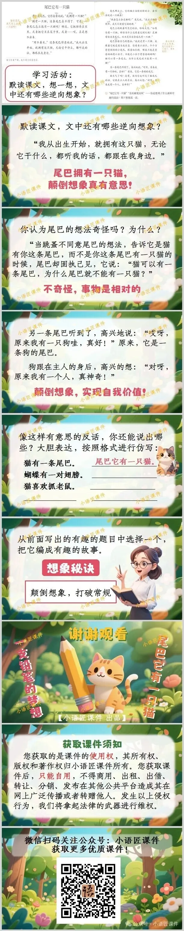 以上便是部编人教版三年级下册习作例文《一支铅笔的梦想》和《尾巴它有一只猫》的独家课件的全部内容。