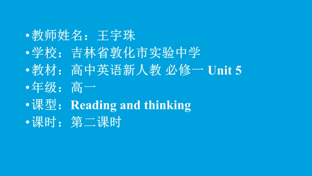 说课课件:人教版必修第一册 Unit 5 Reading and thinking 说课 (吉林 王宇珠)
