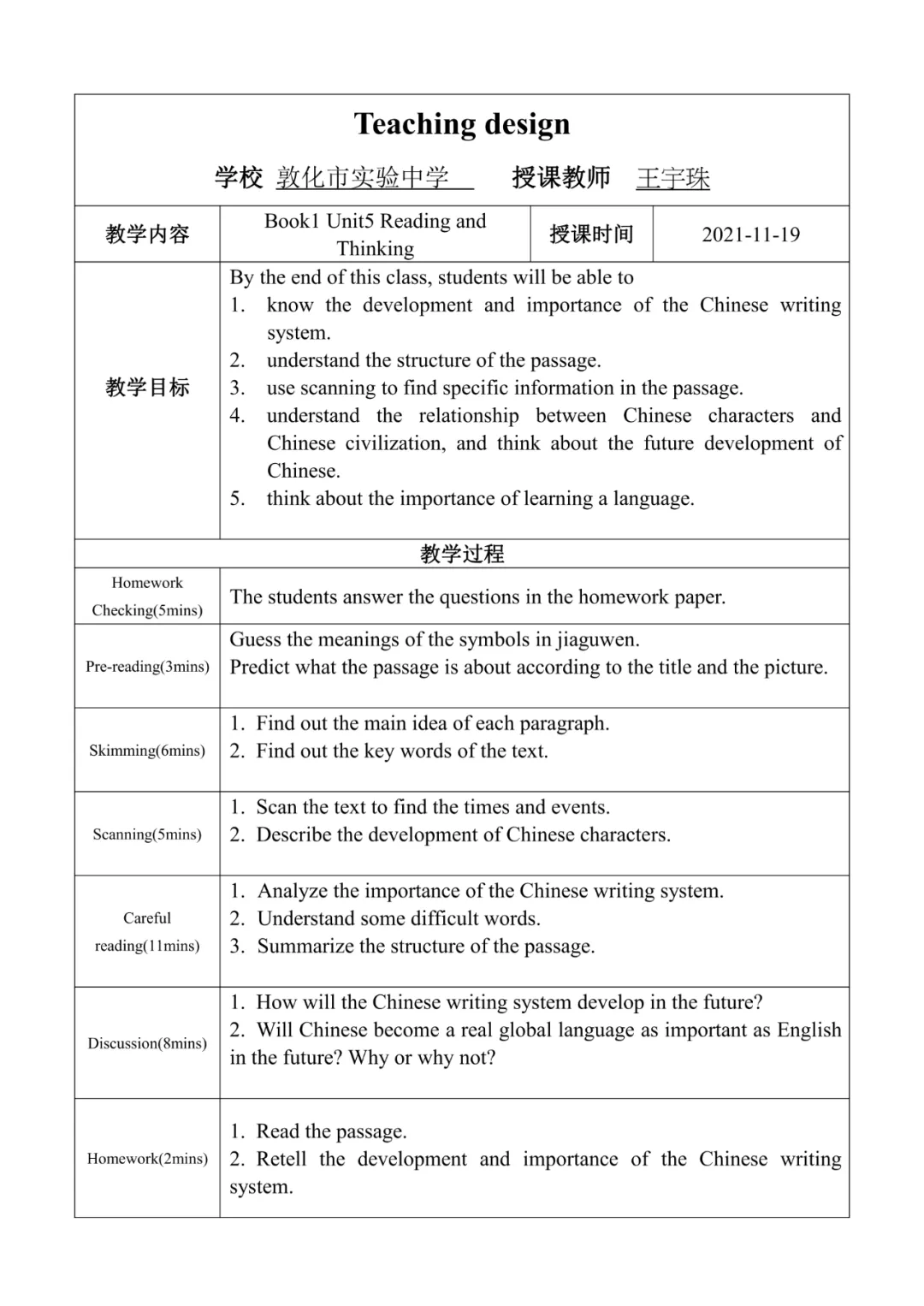 >说课课件:人教版必修第一册 Unit 5 Reading and thinking 说课 (吉林 王宇珠)
