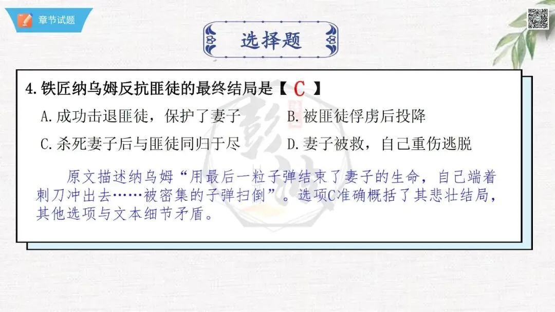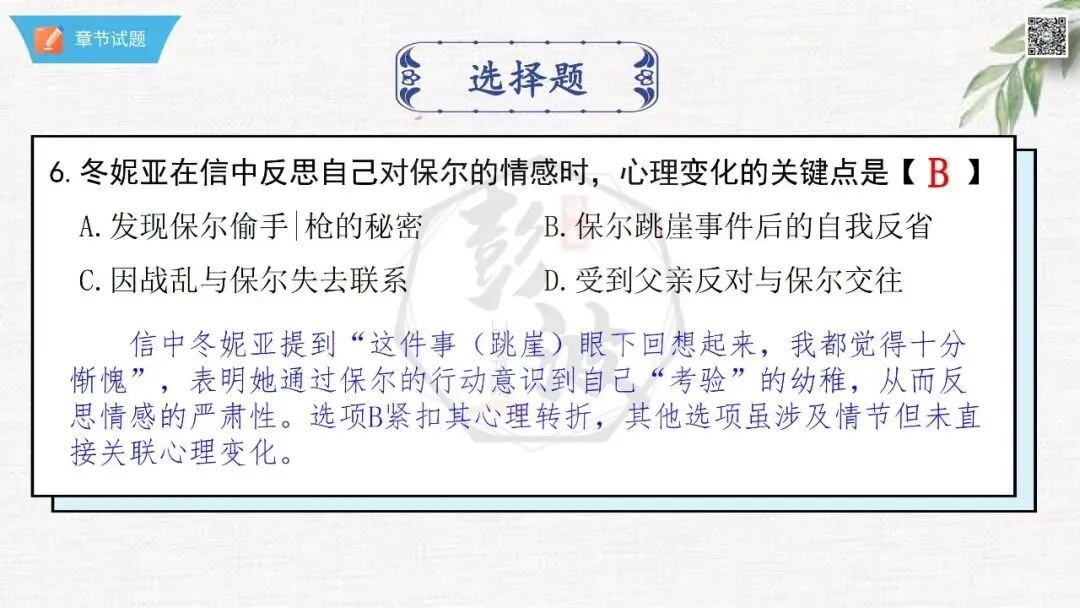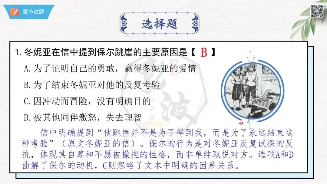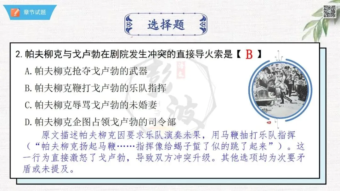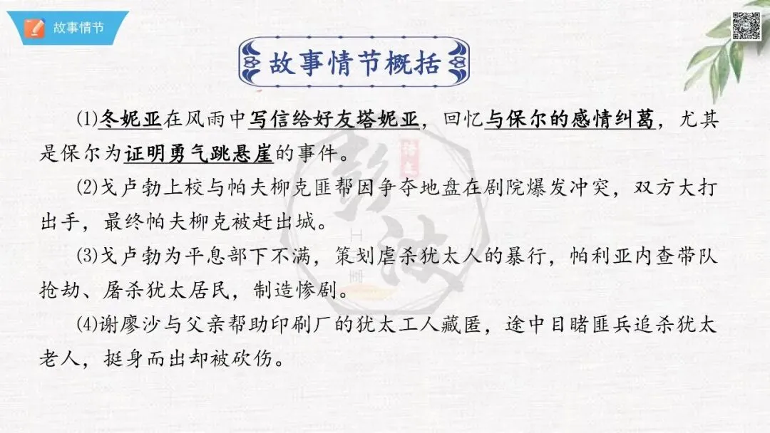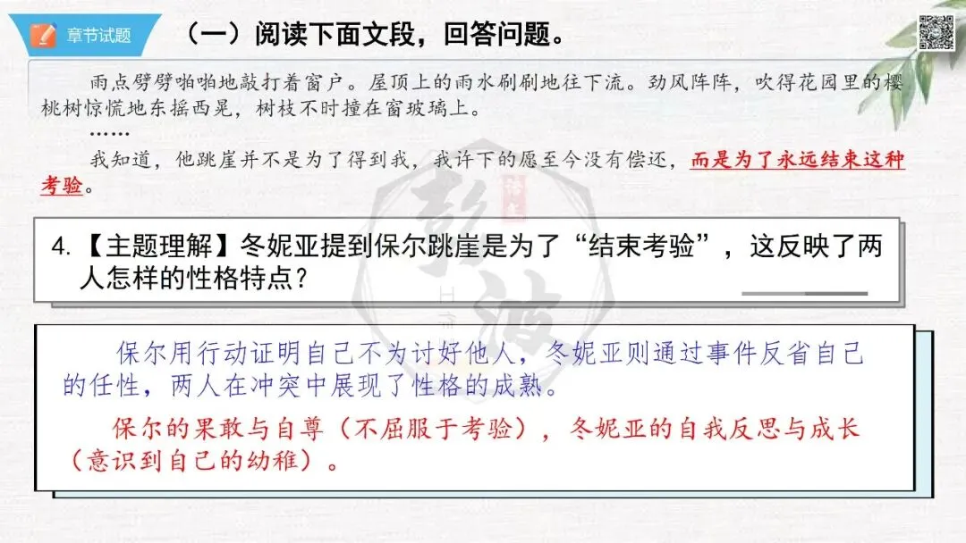 当前位置:首页>课件>七年级下【钢铁是怎样炼成的】章节课件-第一部-第4章-情节导读+人物形象+语句赏析+章节试题