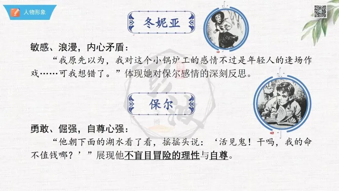 七年级下【钢铁是怎样炼成的】第二部-第1章-情节导读+人物形象+语句赏析+章节试题
