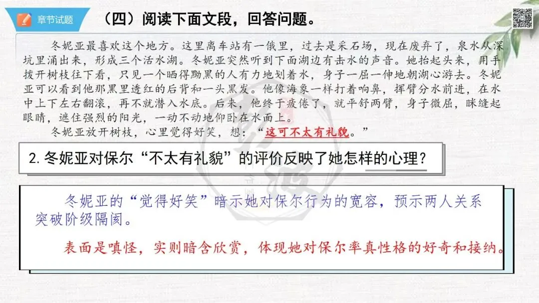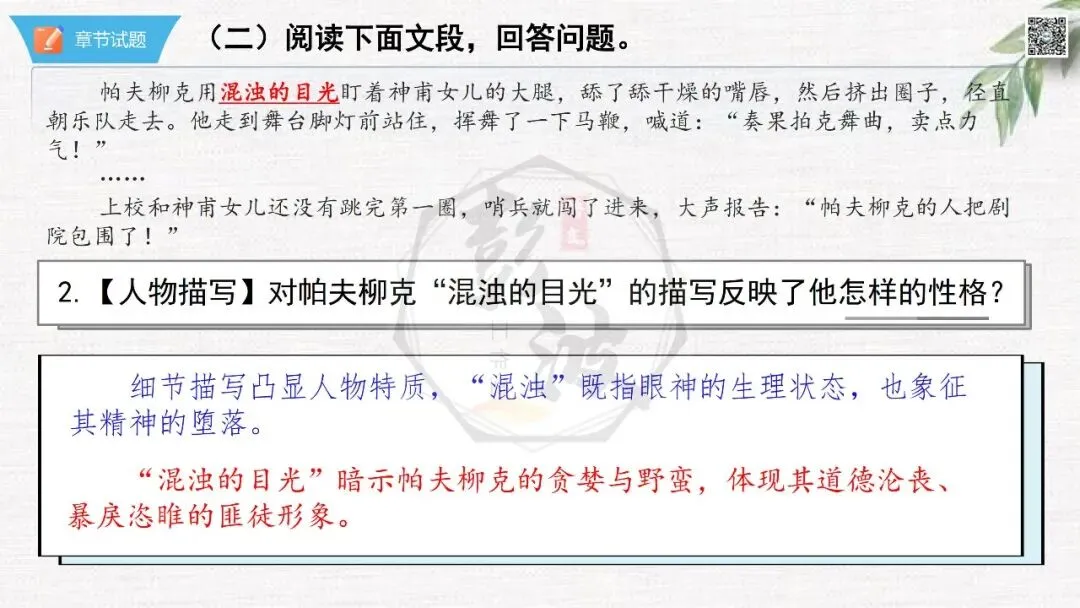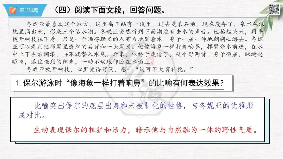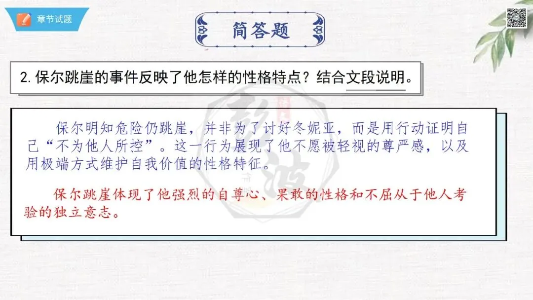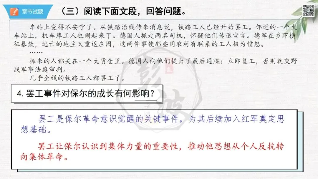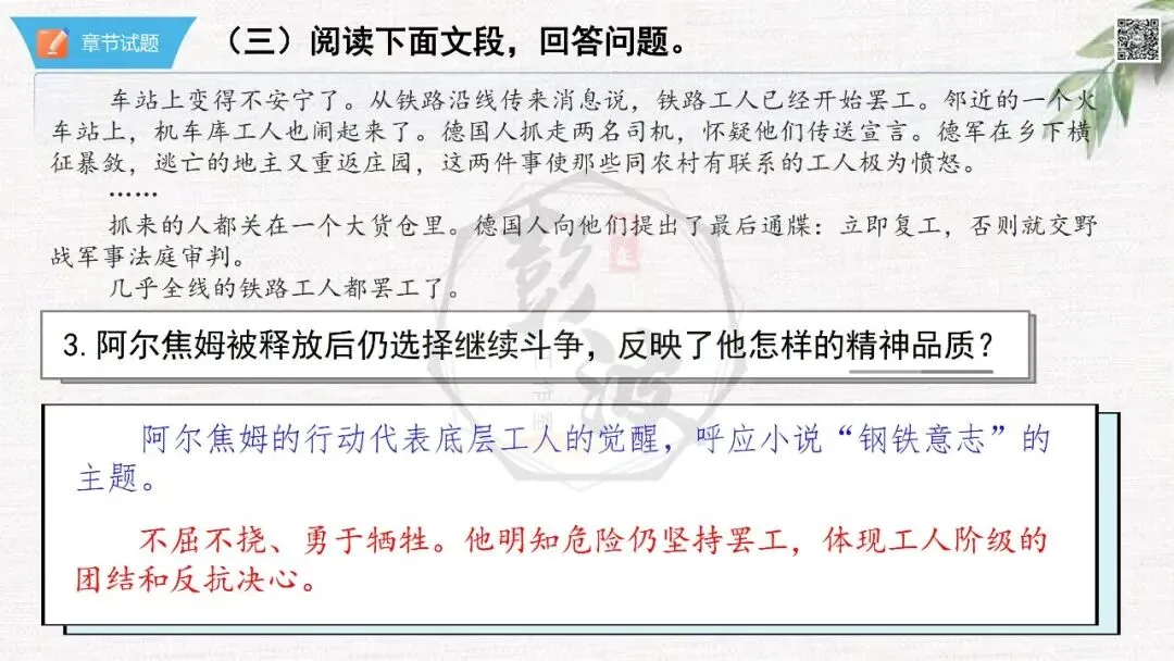七年级下【钢铁是怎样炼成的】第二部-第8章-情节导读+人物形象+语句赏析+章节试题