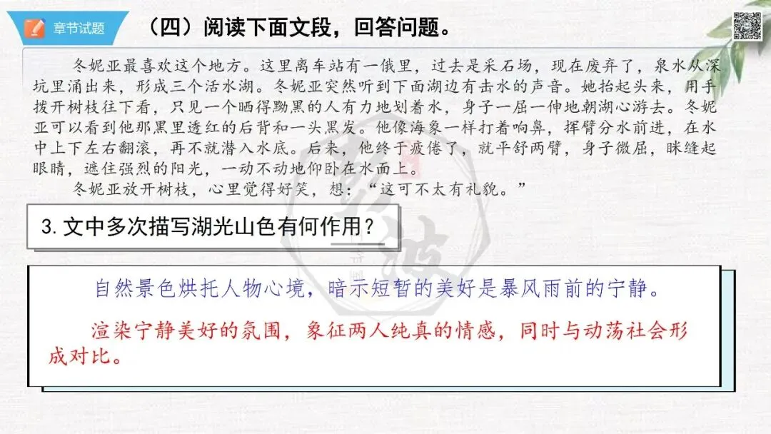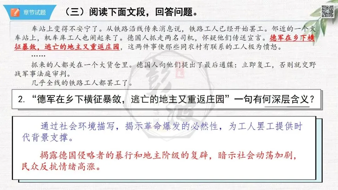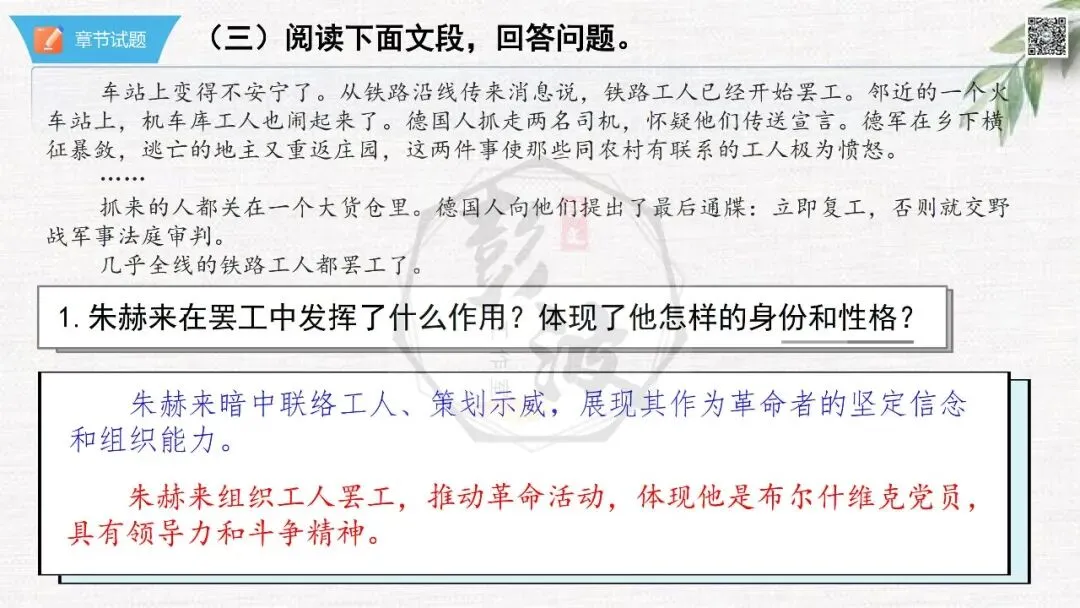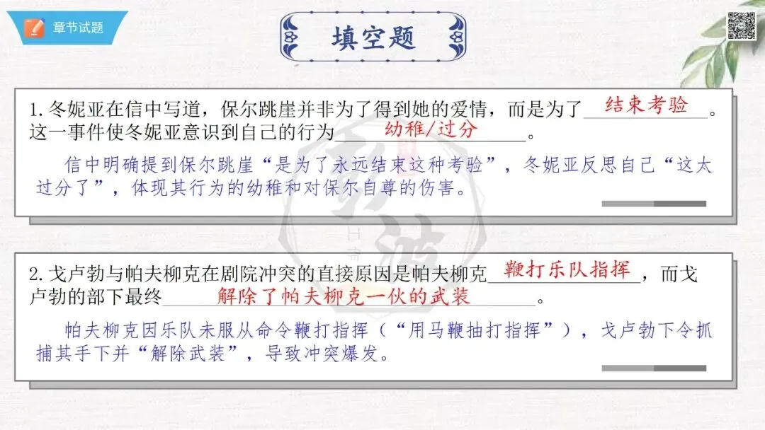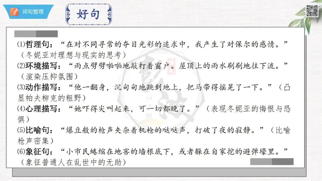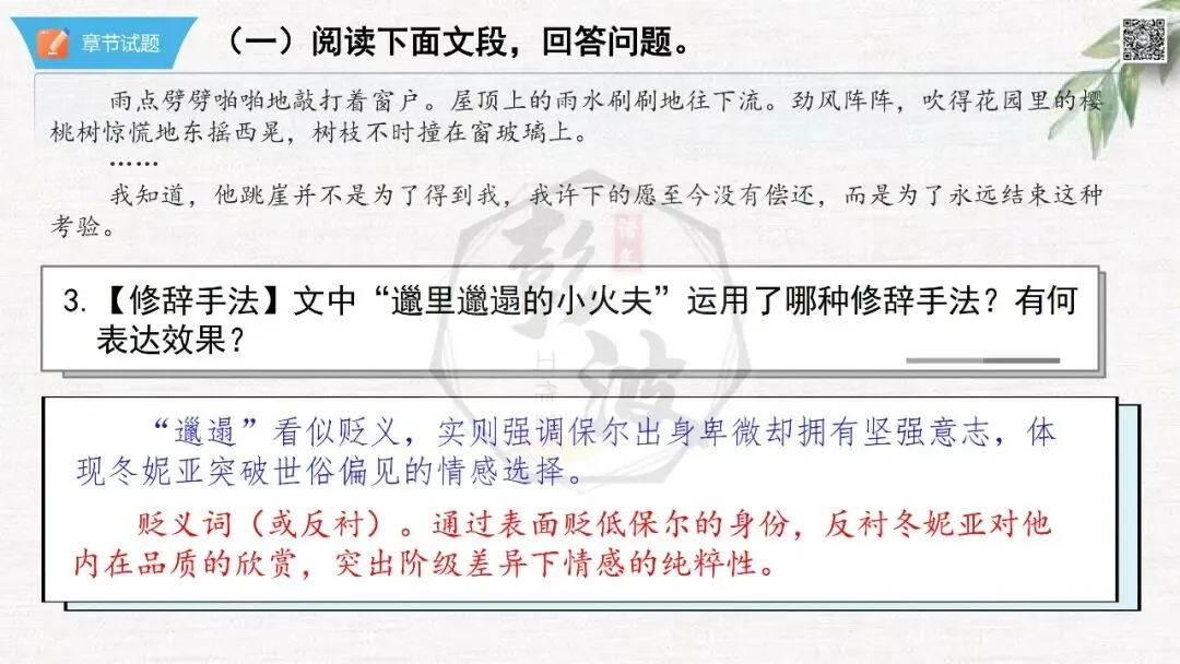 七年级下【钢铁是怎样炼成的】第二部-第8章-情节导读+人物形象+语句赏析+章节试题