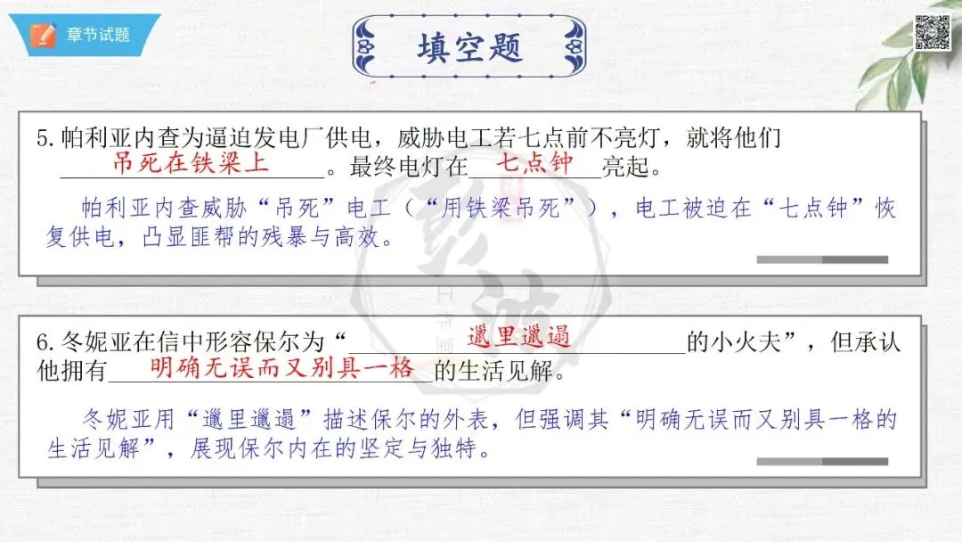 七年级下【钢铁是怎样炼成的】第一部-第5章-情节导读+人物形象+语句赏析+章节试题