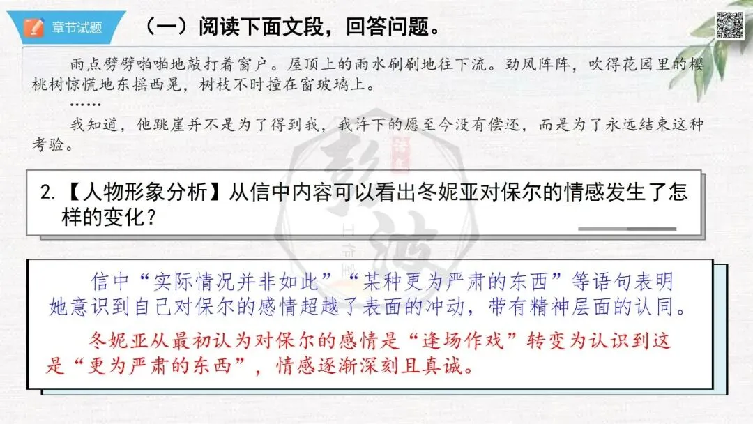 七年级下【钢铁是怎样炼成的】第二部-第9章-情节导读+人物形象+语句赏析+章节试题
