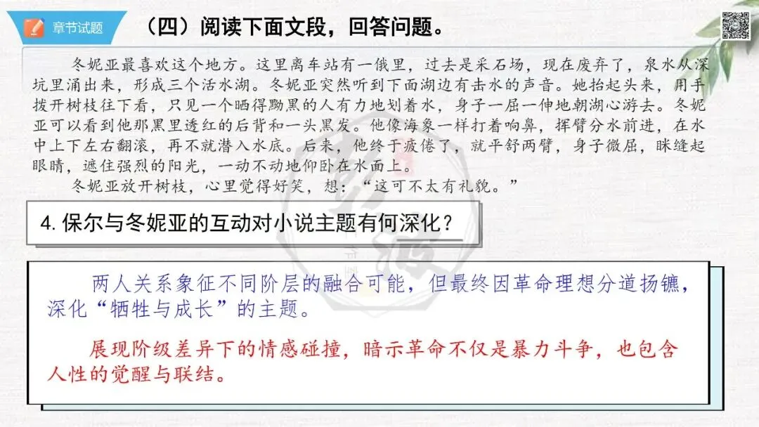 七年级下【钢铁是怎样炼成的】第二部-第4章-情节导读+人物形象+语句赏析+章节试题