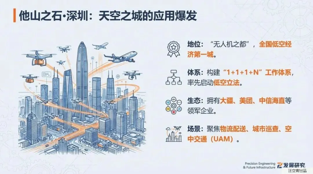 看看隔壁的“尖子生”们是怎么做的,咱们就能学到不少经验。湖南作为全国首个全域低空管理改革试点省份,直接规划了140多个管制区域和70多条航线,真正做到了“天、地、人”和谐统一;江西则靠着深厚的航空底蕴,把南昌、景德镇等地串联起来,形成了从制造到运营的全产业链条;而深圳更是被称为“无人机之都”,大疆、美团等领军企业齐聚,不仅建立了军民协同机制,还率先搞起了低空领域的立法。这些省份成功的秘诀总结起来就是:政府牵头打破空域限制、出台实打实的财政支持政策、并不断挖掘新的消费场景,让企业敢投、市场敢买、飞机敢飞。