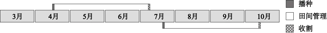 长江中下游地区是我国重要的双季稻产区,近年来,长江中下游某地区通过生物技术培育短生育期水稻品种、推广机械化作业,实现了“省工、省时、省力”的生产模式创新。如图示意该地区双季稻生产环节时间安排,完成下面小题。