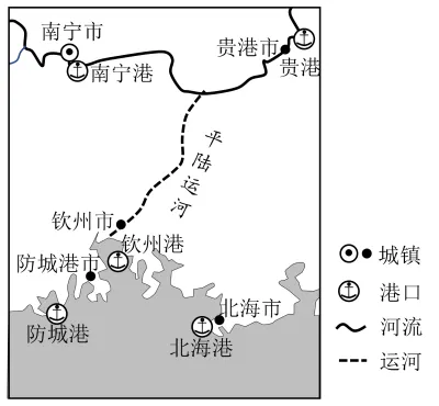 2022年8月,平陆运河开始建设,该运河是西部陆海新通道的关键工程,工程全长约140公里,设计通航能力为2000吨级船舶,预计2026年通航。届时,水运绕道广东出海将成为历史,形成广西“河海联运”新格局。如图示意平陆运河所在区域,完成下面小题。