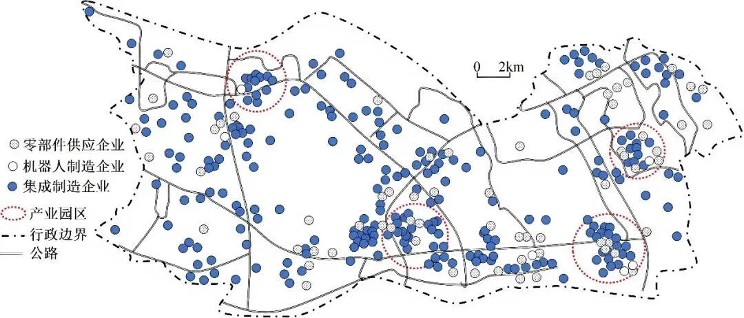 (1)指出北滘镇机器人产业各环节的空间分布特征。