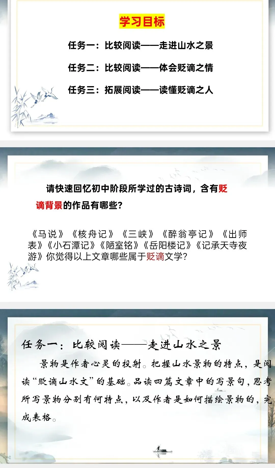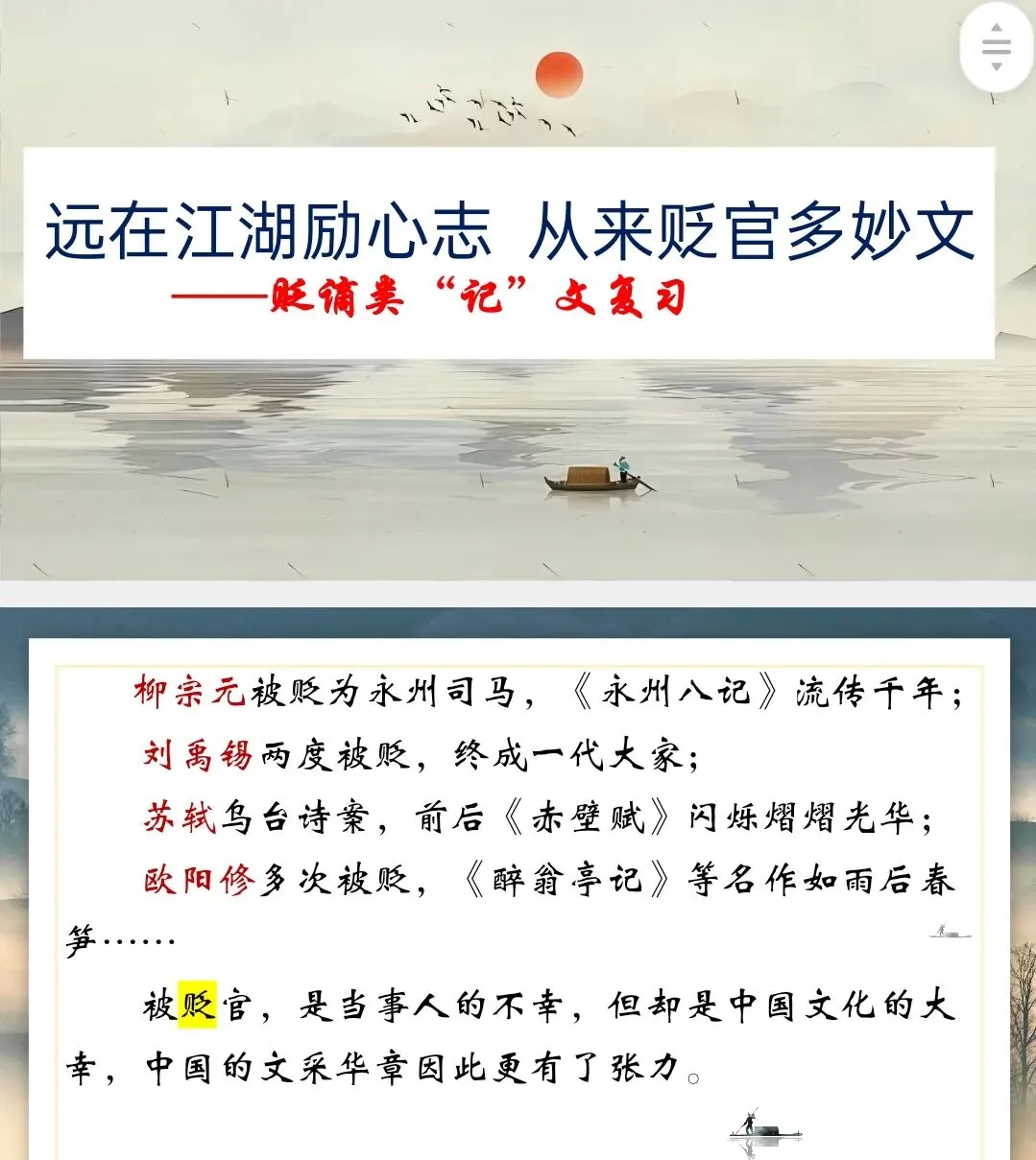 >这份贬谪类“记”文复习课件,帮你梳理核心考点,读懂文人风骨,考试直接用!