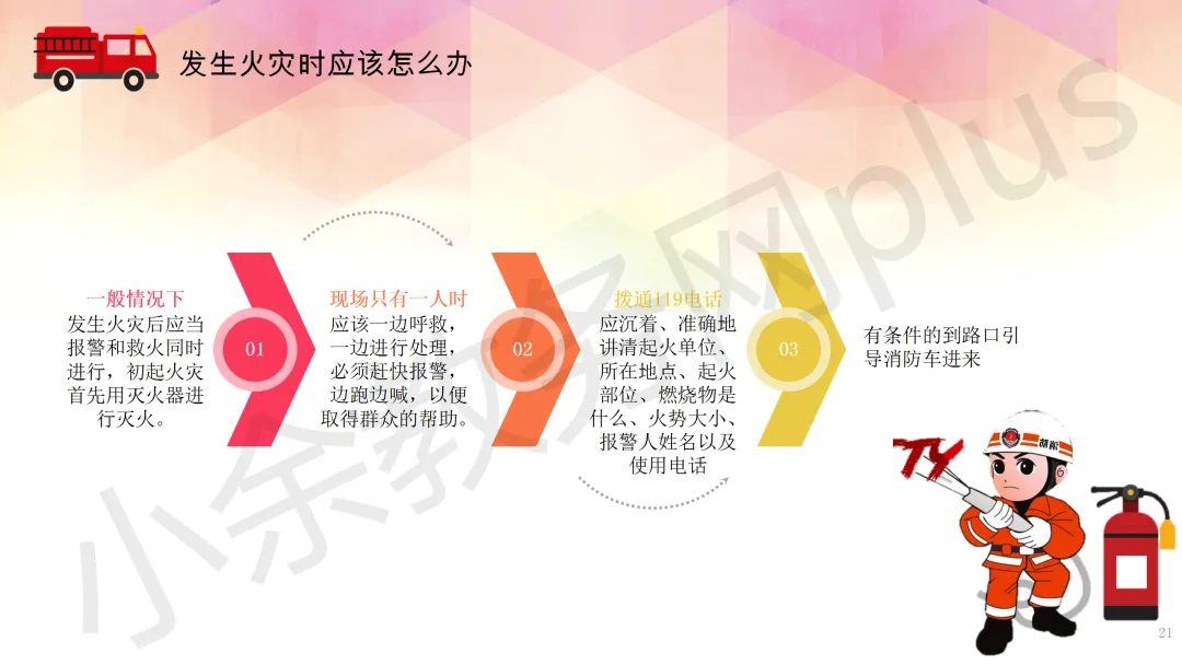 下面是这份消防安全知识科普宣传 PPT 课件的预览,共 21 页。