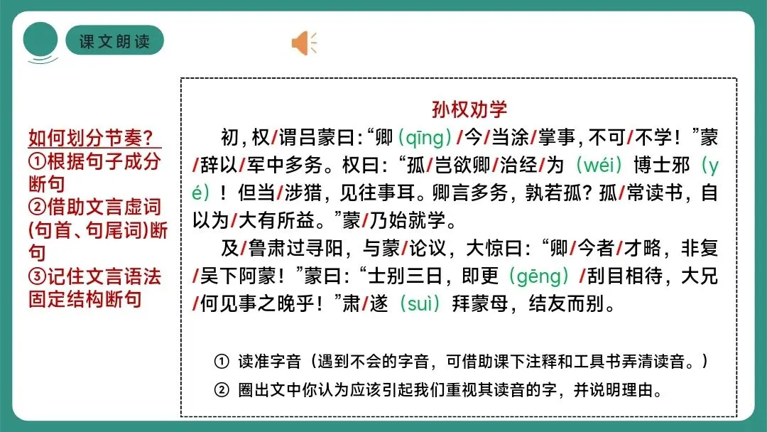 >七下《孙权劝学》任务型课件被夸爆啦(课件+教案)